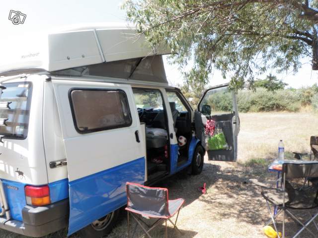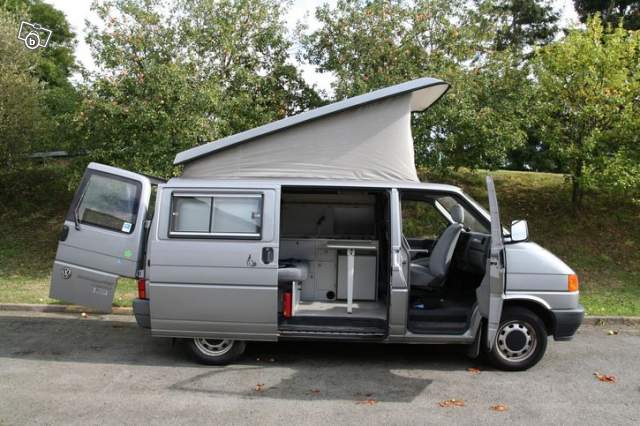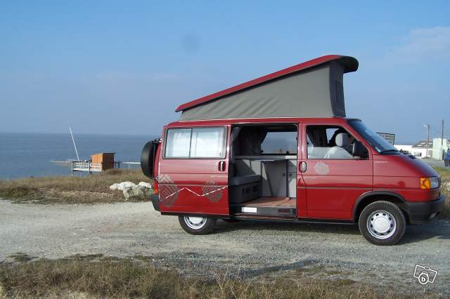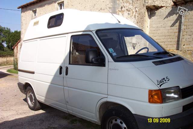 VW T4 Synchro (4x4) Diesel année 1993 168000km en très bonne état. 4 places assises, 4 couchages, tout équipé camping car, nbx rangements, évier, 2 gaz etc... Radio 10 CD, toit rehaussé et relevable. Moteur en très bonne état batterie neuve, pot d'échappement neuf, CT OK. Vendu avec 4 pneus neige, porte vélo, 2 portes kayak.