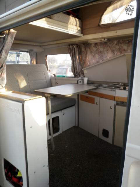 sièges pivotant, cuisine 2 réchauds, evier avec douchette, reservoirs eaux propre et usée, chauffage stationnaire programmable, racc 220V,