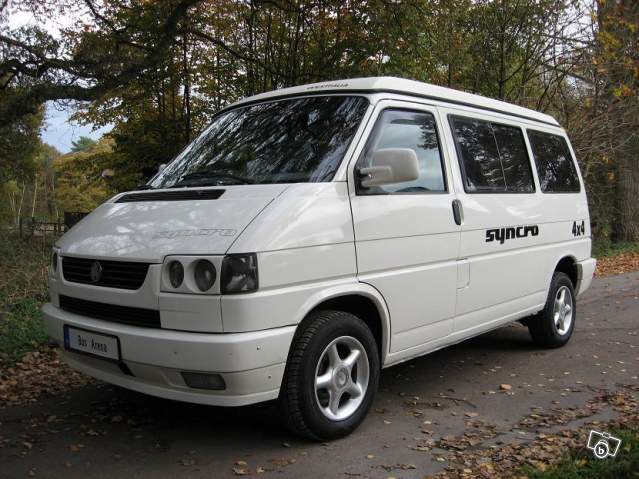 VW transporter t4 ,4 roues motrices, jantes alu, vitres elect, fermeture centralisee, distribution neuve et remplacement de la culasse (culasse et soupapes neuves moins de 1000km),amortisseurs avant neuf , vehicule propre,tous les filtres et les vidanges ont été faits (moteur boite , ponts av et ar), 8 places modulables (on peut avoir au choix 2,3,4,5,6,7 ou 8places), c est un vehicule equipe de 4 roues motrices (viscocoupleur), le pont ar ne s enclenche qu en cas de patinage du pont avant,donc economie de carburant et pas d usure inutile de la transmission . Possibilite de reprise sur VW 181,Mercedes classe G,Toyota 4x4,utilitaires, remorques, porte voiture,materiel de garage. Prix 5200e
