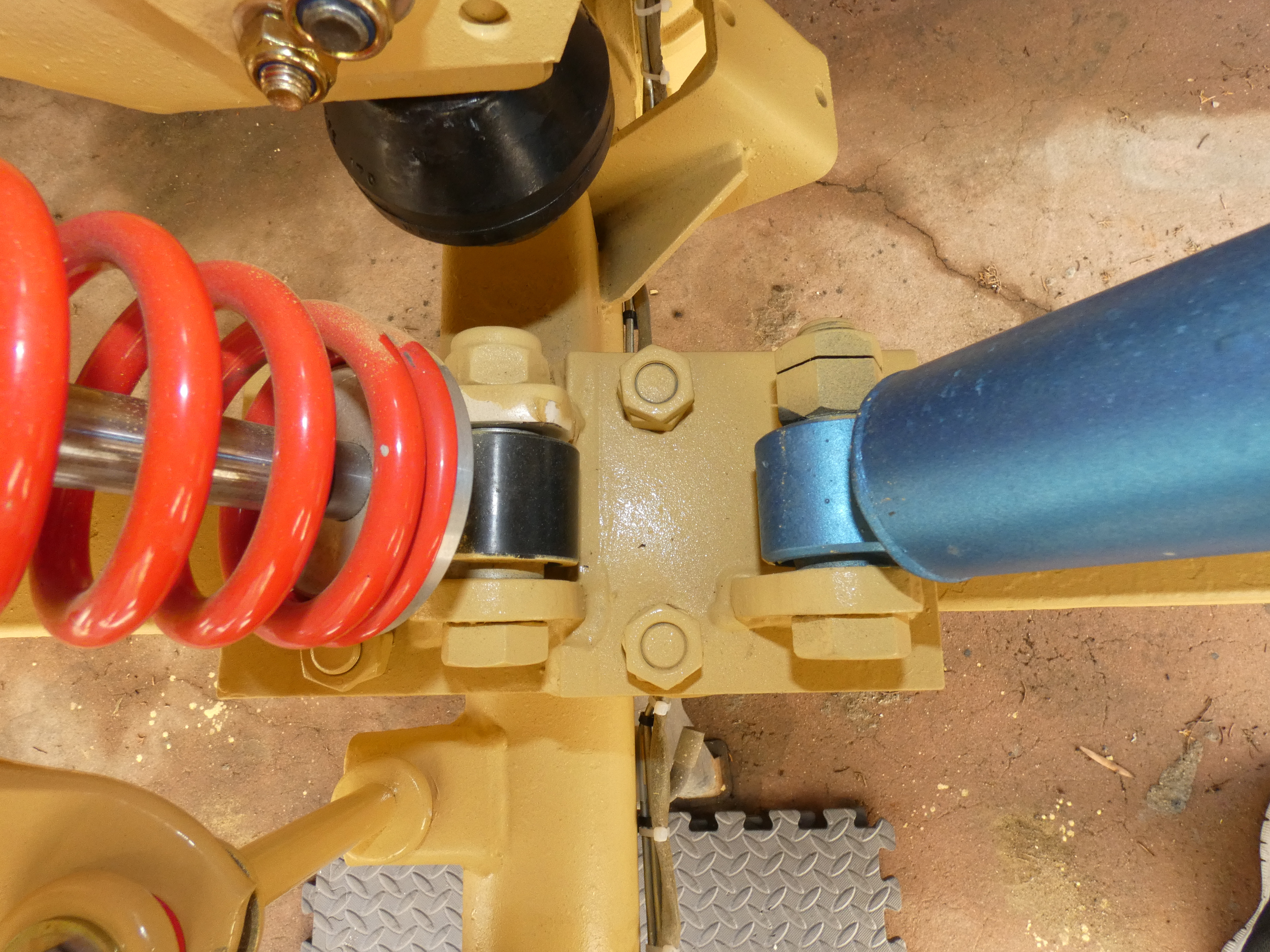 J’ai voulu monter des amortisseurs différents sur le V pour avoir un coefficient d’amortissement différent de fabrication, de façon à réduire les risques de résonance sur les pistes en tôle ondulée