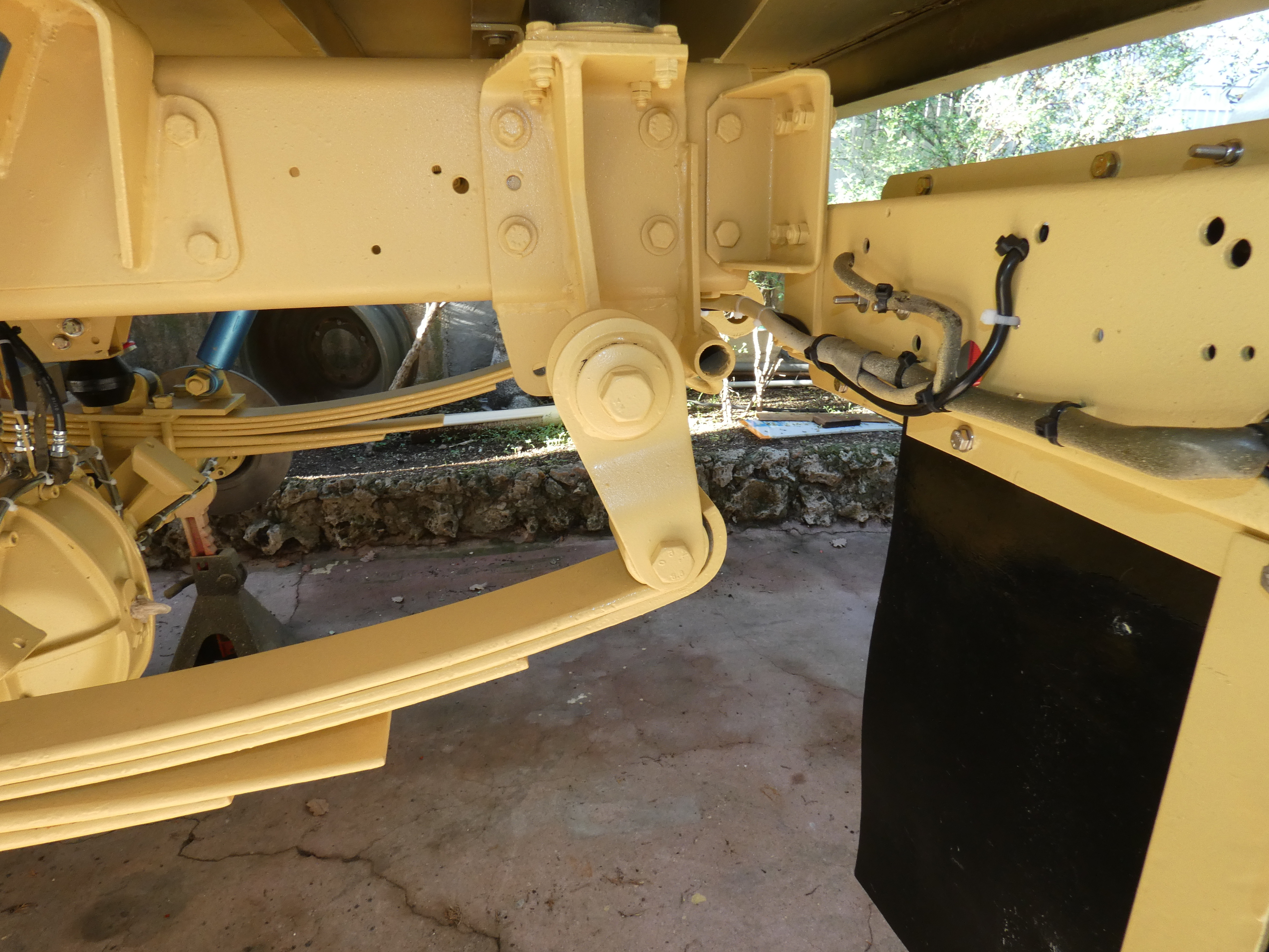 - Perso et vu que je suis en permanence à presque 5 tonnes, les lames d'origines étaient insuffisantes et je devais mettre trop de pression dans mes coussins . En voyage, à Oulan Bator, j'ai fait rajouter une grosse lame dans le paquet du ressort, en 3e position depuis le haut. La suspension est finalement acceptable, mais rien a voir avec mon ancien tapis-volant Toyota ! ... OK, le Brutt est un camion (avec un empattement trop court de 30-40 cm!), pas une voiture...