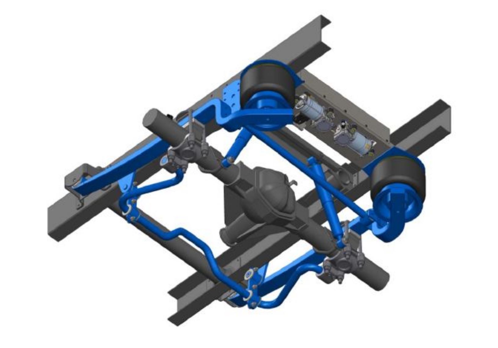 les camions sont équipés de suspension à boudin d'air (qui doivent être régulées électroniquement), mais on voit surtout cette configuration sur les 40 tonnes qui roulent surtout sur autoroutes. Je n'ai pas l'impression que les camions de chantier en soient habituellement équipés