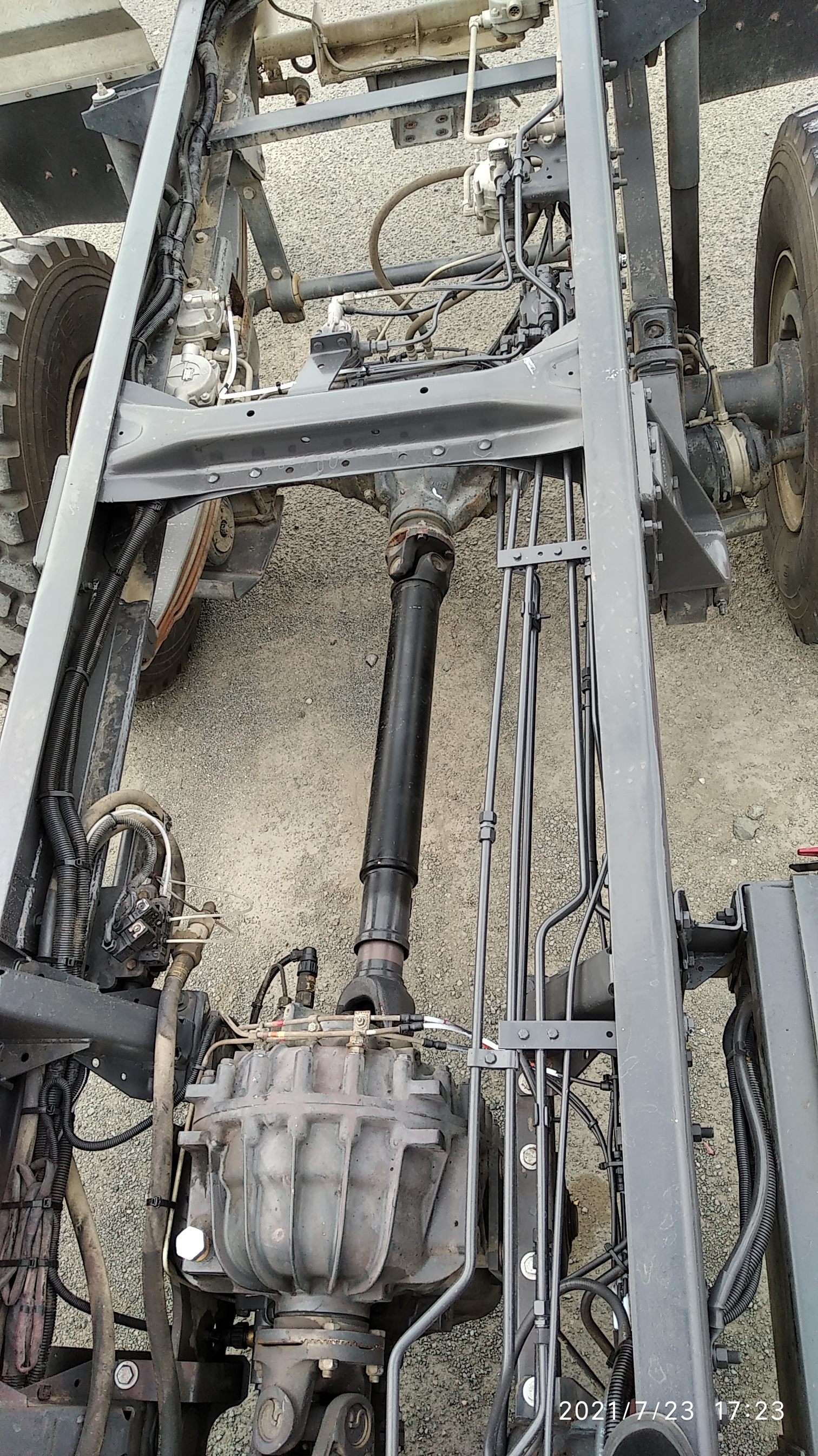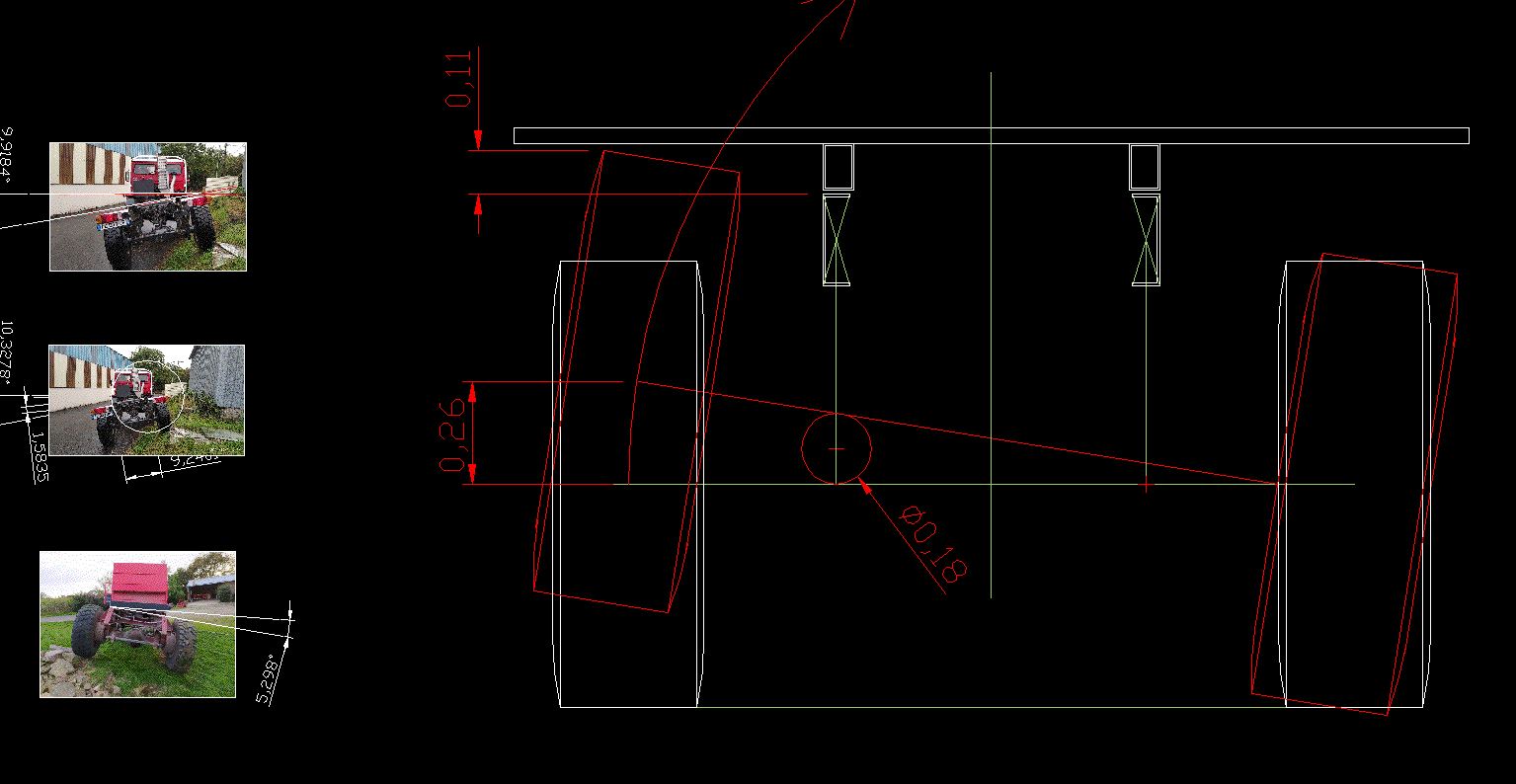 Oui pour la masse de la cellule 3t5 environ en charge , 21 cm passage de roue à l'horizontal véhicule à plat ; 20 cm sur la roue à l'appui et l'autre roue à une hauteur de 50 cm, je parle du même essieu . Axe pivot à l'avant et axe pivot à l'arrière accompagné de deux tampons caoutchouc de part et d'autre sur le châssis venant en contact avec le faux châssis sans pression de visu , 5 cm d'espace à l'origine entre le faux châssis et le châssis . J'ai des roues de 365/85R20 de mémoire 1m15 de diamètre, poids total du véhicule cabine 9 places, 9t500 roulant 3t700 sur l'avant et 5t700 à l'arrière. Je ne sais pas si je suis bien clair dans mes explications .A + Loïc , n'hésites pas si je peux aider .