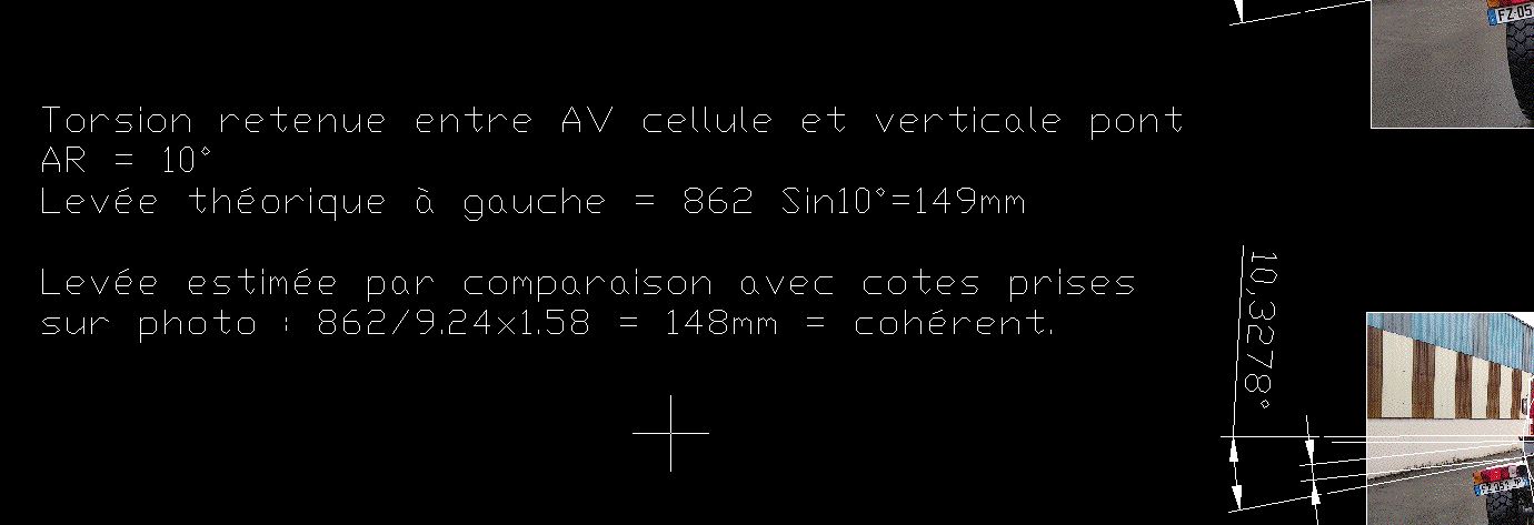 Si enfin j'ajoute à cette déformation maxi des suspensions, la torsion du châssis estimée à 10°, le croisement global est vraiment très important, mais pour avoir fait bcp de franchissement, dont lors des formations conduite PL TT en véhicule feux de forêt, c'est de cet ordre là en effet.