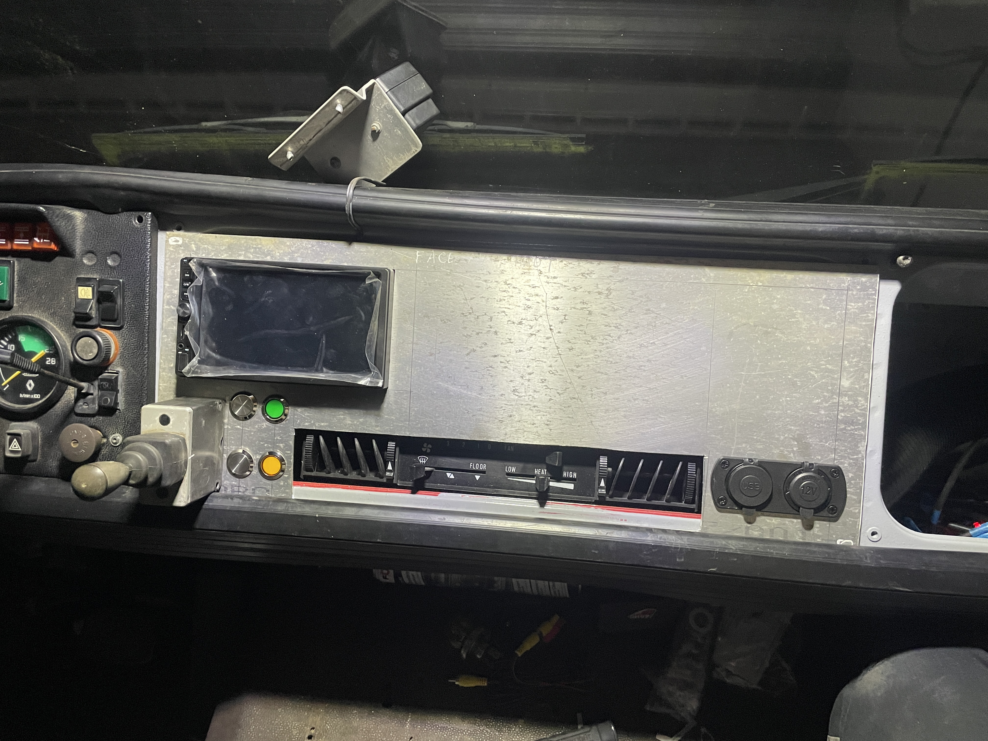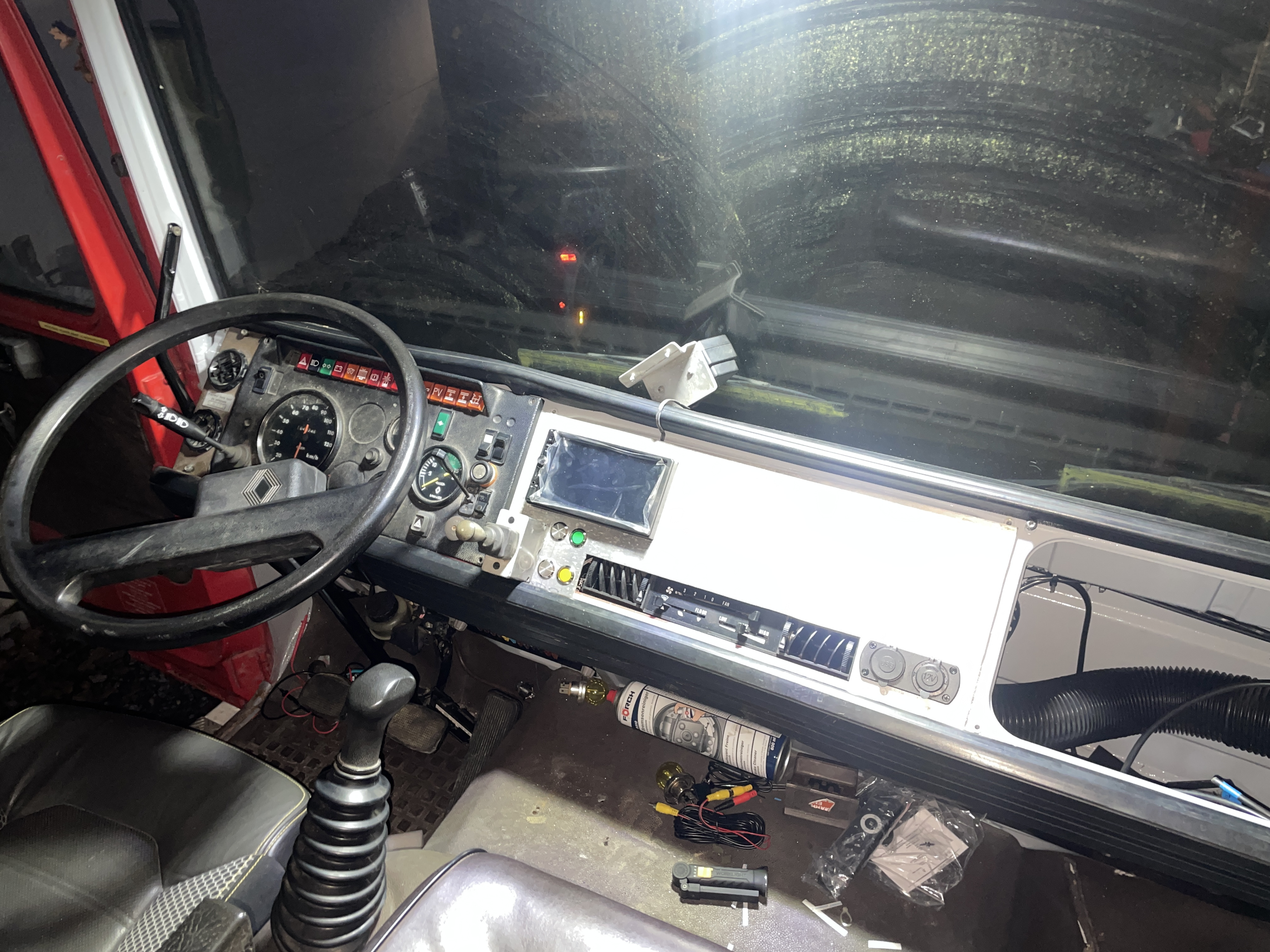 Puis mise en place d’un autoradio Carplay, positionnement plus pratique du levier de commande du treuil et rajout d’un interrupteur de mise en service de la prise de force du treuil et un second pour la commande d’un treuil arrière.