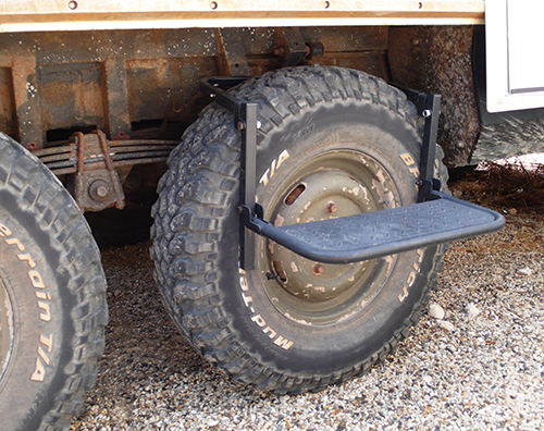 L'échelle ou l'escabot amovible reste une solution accéptable pour qui n'a pas la place de glisser tout cela sous le camion.