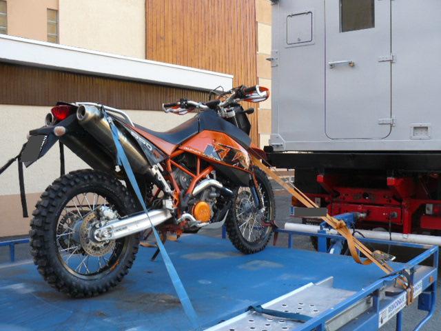 bonsoir Tibotibo a écrit :salut a toi traban61,pour ce qui est du porte moto(qui elle ma envoyé froter le bitume il y a quelques semaines,la boite de vitesses a bloquée dans un virage) je vais installer un treuil a l'arrière de la caisse pour les roues de secours et qui me servira a lever la moto qui va reposer sur la première marche de l'escalier que je bloquerai en position ouvert,la moto reposera sur le sabot moteur