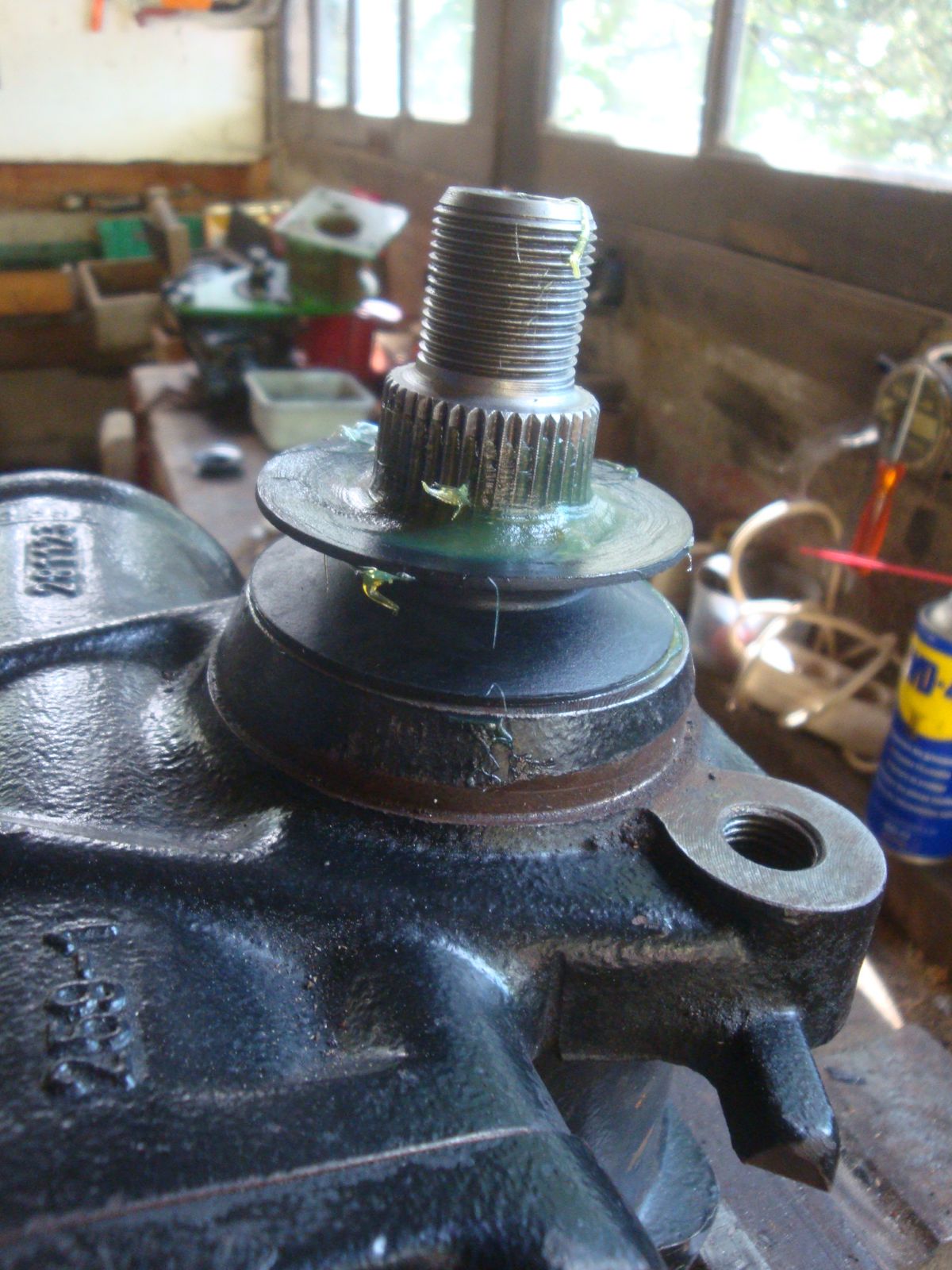 Affiner le réglage du point-milieu en alignant le repère qui est sur le dessus de l'axe cannelé sortie cardan (visible ci-dessous) et l'entrée/sortie d'huile dans le boitier (à gauche sur la photo) :