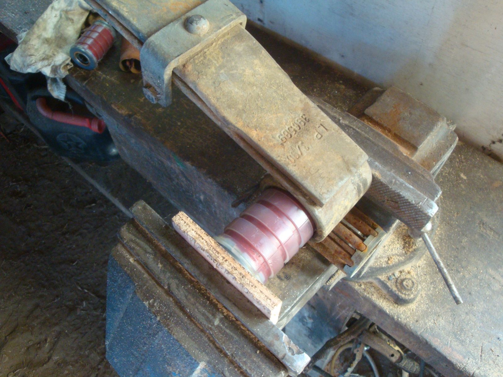 - Mise en place des silentblocs à l'étau après les avoir graissés