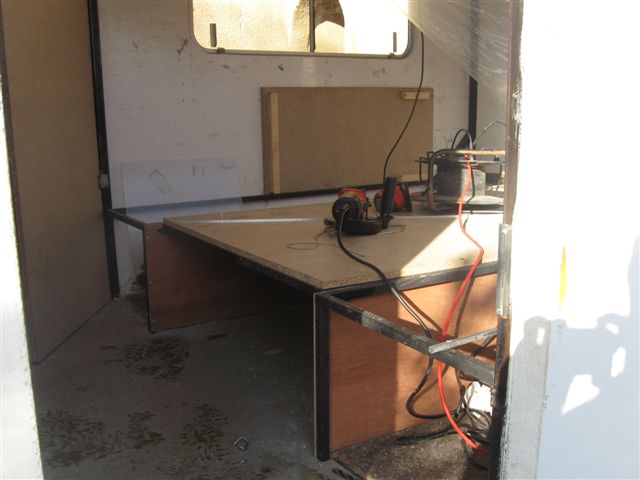 pose d'un réservoir d'eau propre de 150l en inox et d'un coffre a outil.