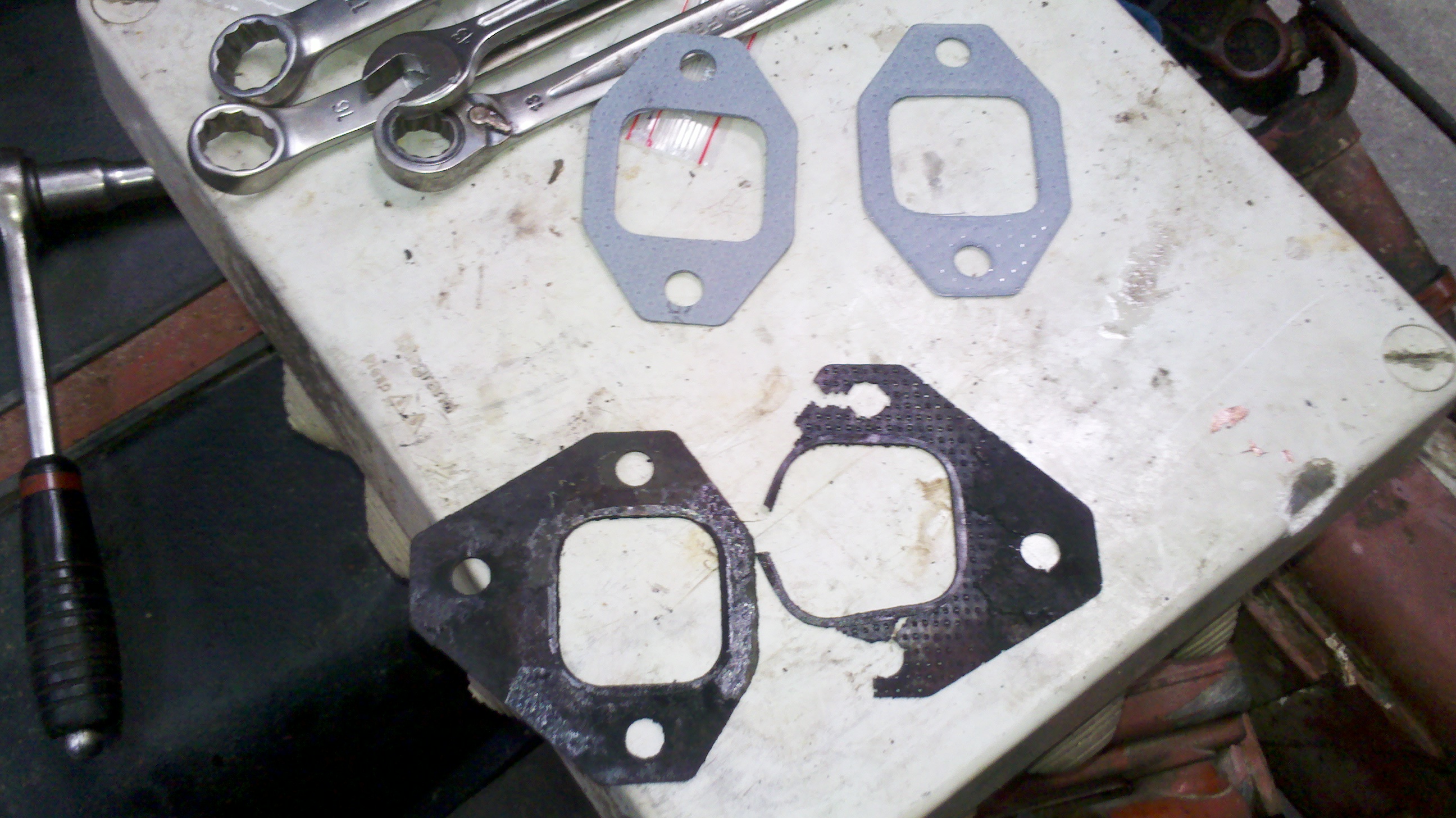 cette semaine j'ai reçu quelques pièces changement du fameux silent-blocs moteur, plus que pourri et des joints de collecteur d'échappement, qui eux aussi n'étaient plus neuf ensuite en voulant gouter au bruit d'un échappement libre ( con le mec, il remplace ses joints de collecteur pour tout enlever derrière
