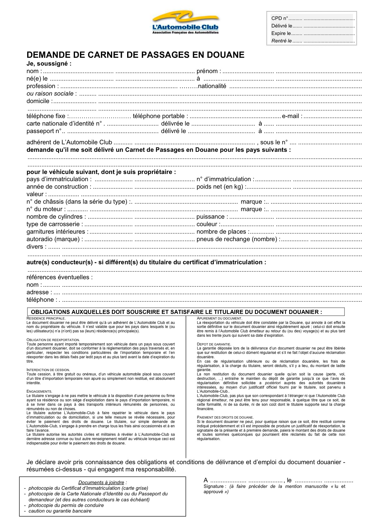 Moi j'avais pris un carnet ATA car j'avais lu que pour l'Afrique du Sud le CPD était nécessaire, mais comme je ne voulais pas laisser de caution à l'ACF je m'était dit que je verrais bien sur place.
