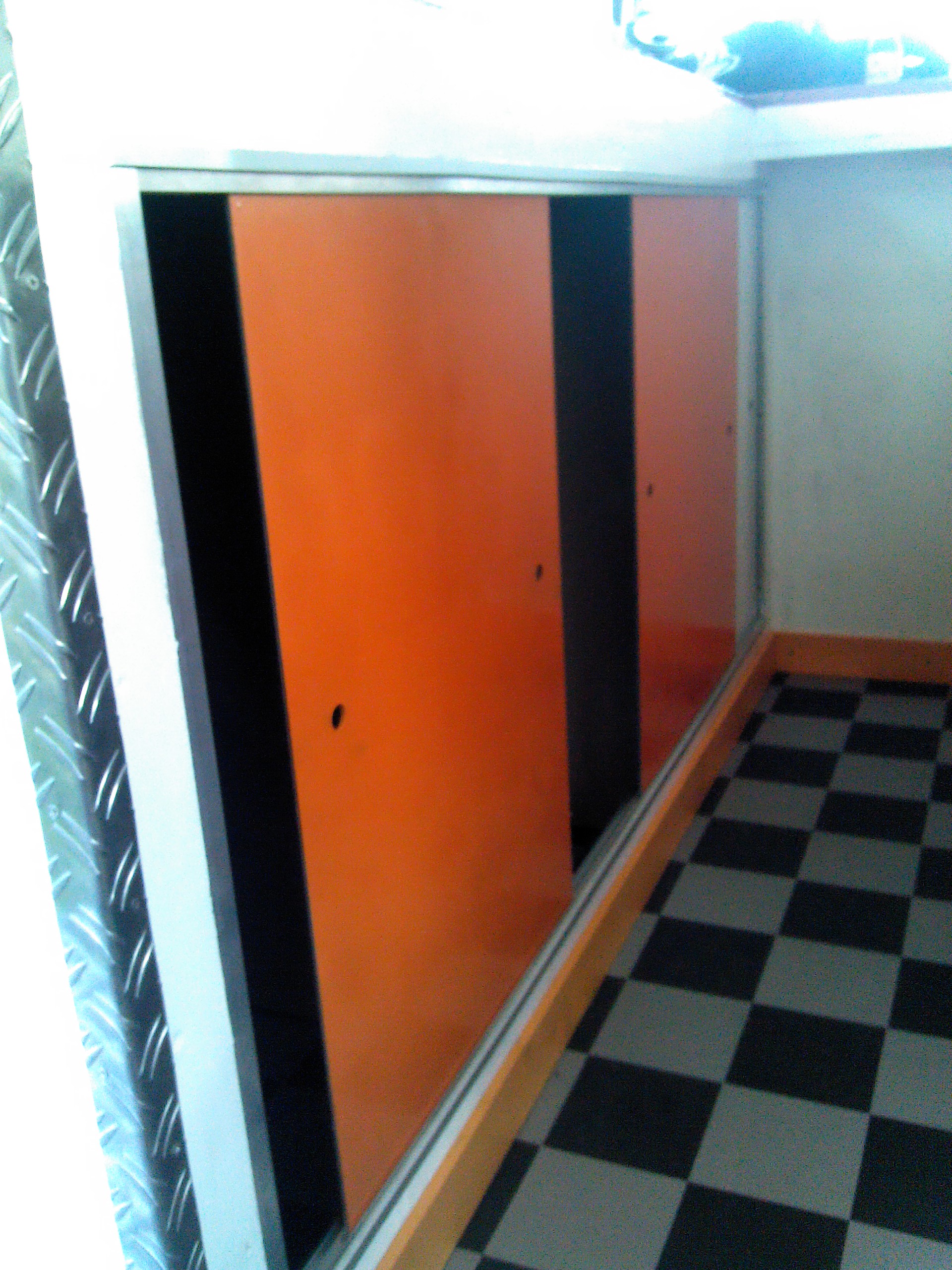 J'aime bien l'idée des portes coulissantes dans les espaces réduits, mais est-ce que tu as un système pour les verrouiller histoire qu'elles ne s'ouvrent pas toutes seules au freinage (à l'accélération ça devrait aller hein :lol: )?