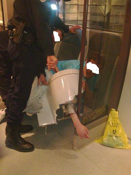 > un crétin se coince le bras dans le trou des toilettes du TER .... !