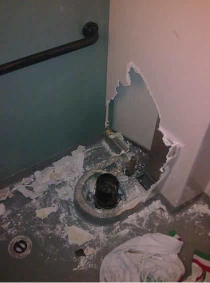 > Le jeune homme était en permission et devait regagner la prison le soir-même. Selon ses explications, il aurait souhaité récupérer sa boulette de shit aspirée par la chasse d'eau. Le bras aspiré par l'appel d'air.