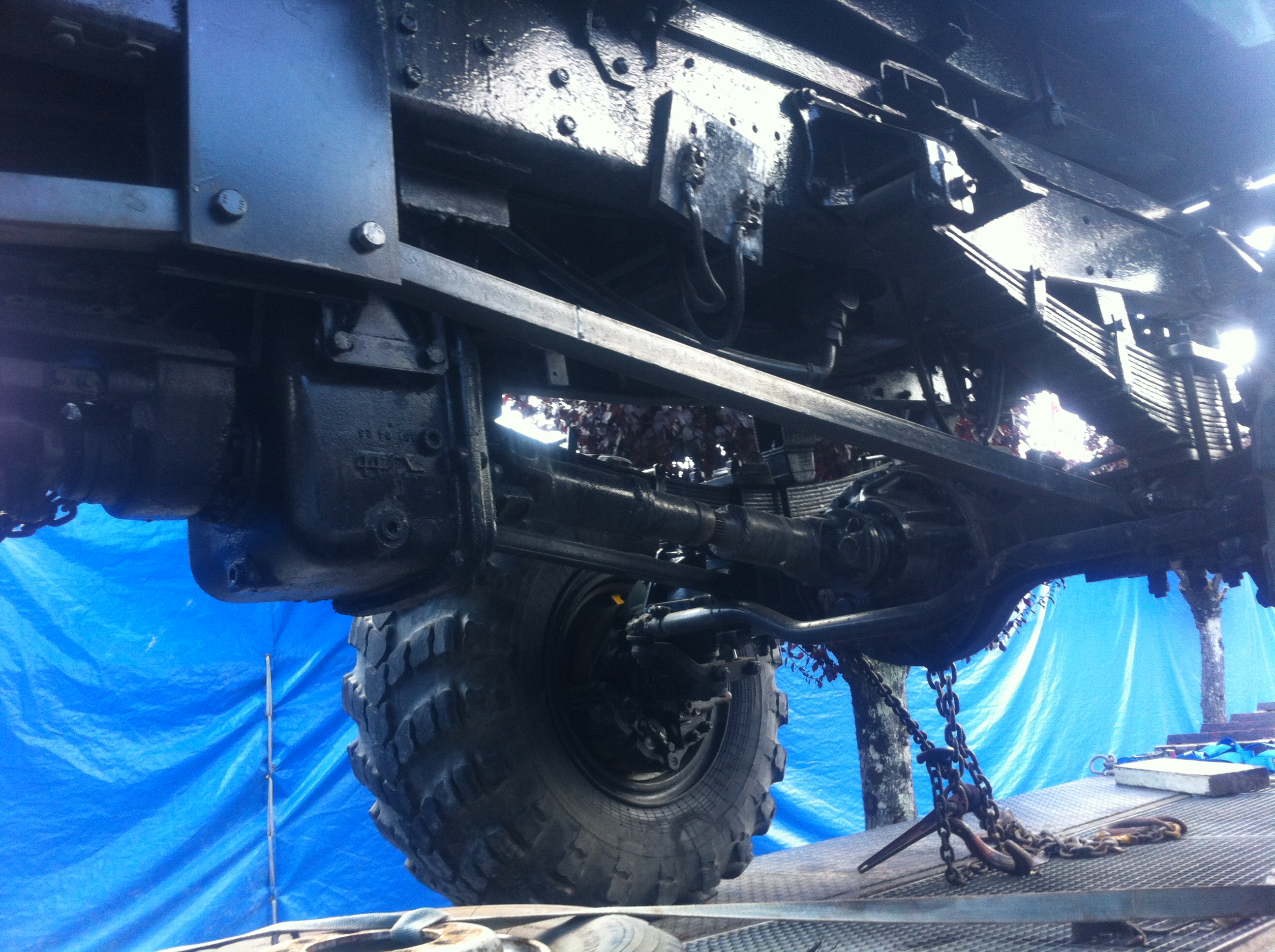 Le véhicule à pour base un Brimont 4 roues directrices. Peut être un châssis de TL80? En tous cas, le châssis a été rallongé dans sa partie arrière.