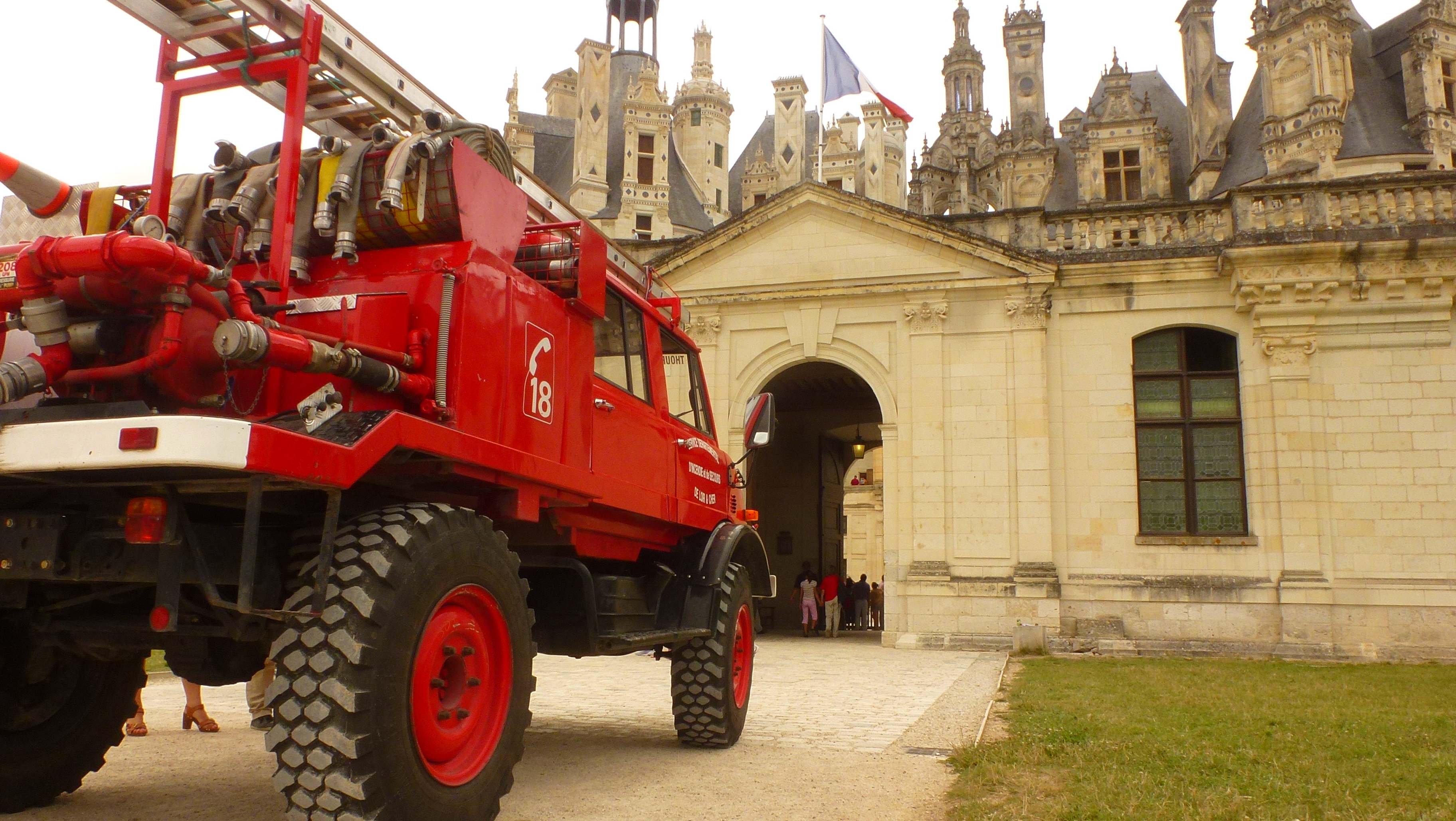 en route vers le mini rasso des landes, avec platypus et sa copine nous avons fait une halte au chateau de chambord... et il y avait la un vieux mog pompier en bel état.