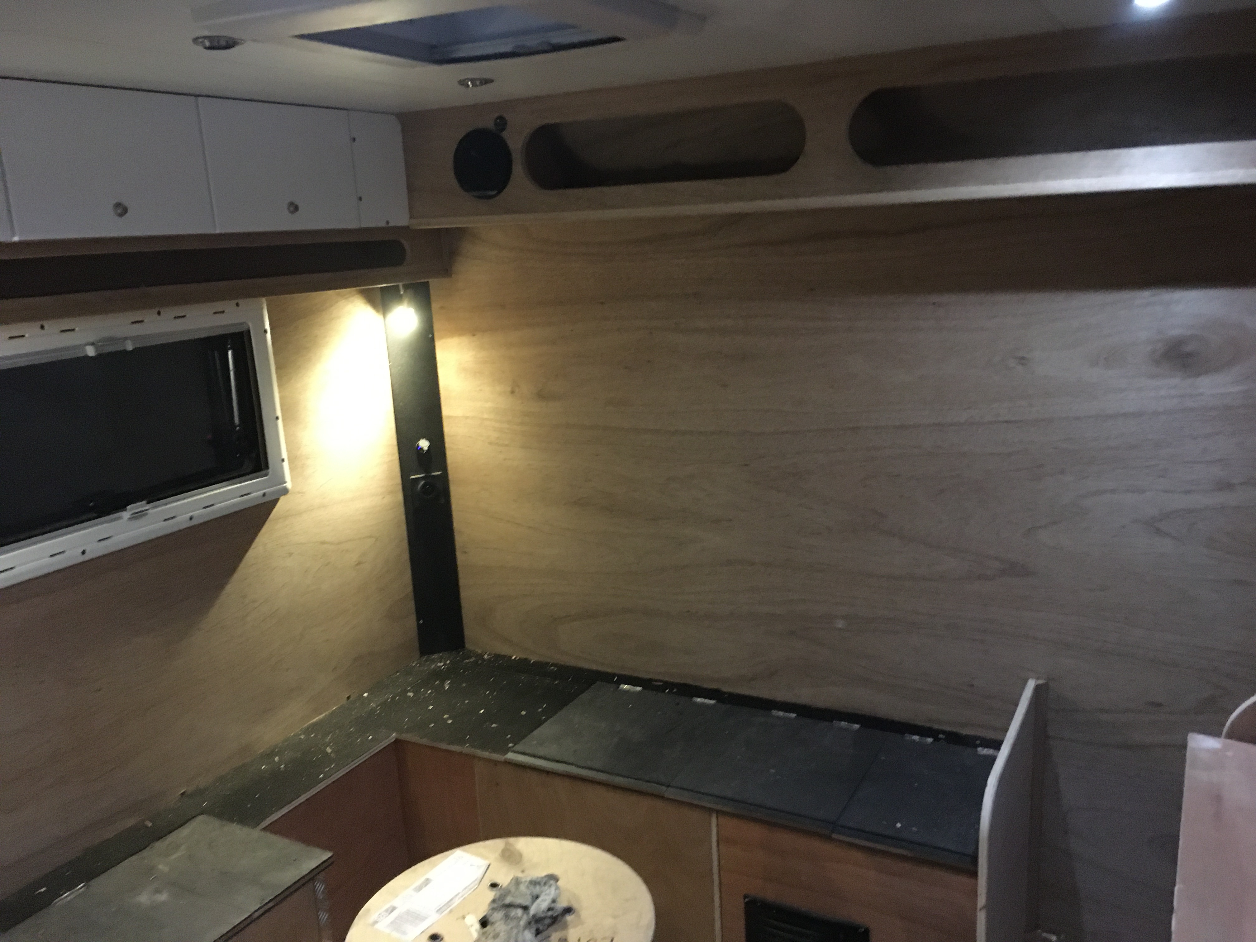 J attaque les finitions … Tirroir sur toute la largeur du lit , banquette , divers baguettes et plaquage , etcc etccc …