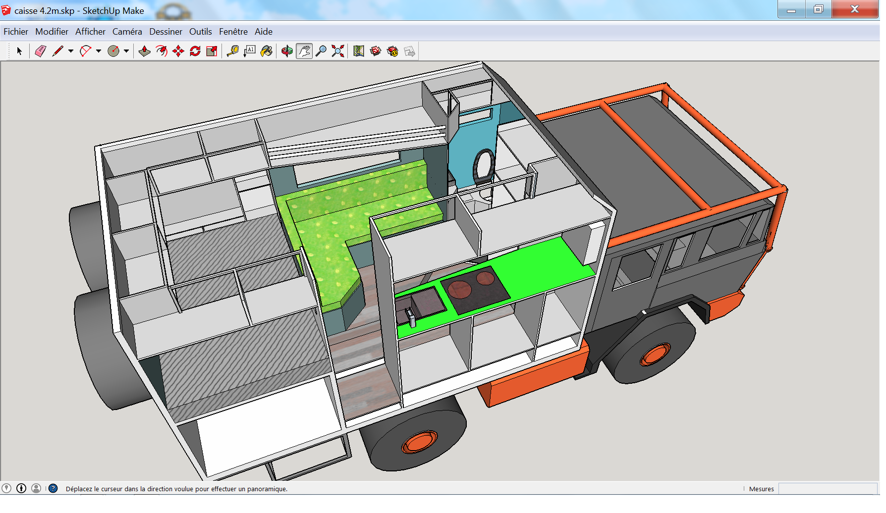 Je pense attaquer prochainement des que le cam sort de chez notre pote, d’ailleurs sa avance bien il nous as soudé une taule a la place d'une des fenêtre et il a fini de peindre l’intérieur de la cabine