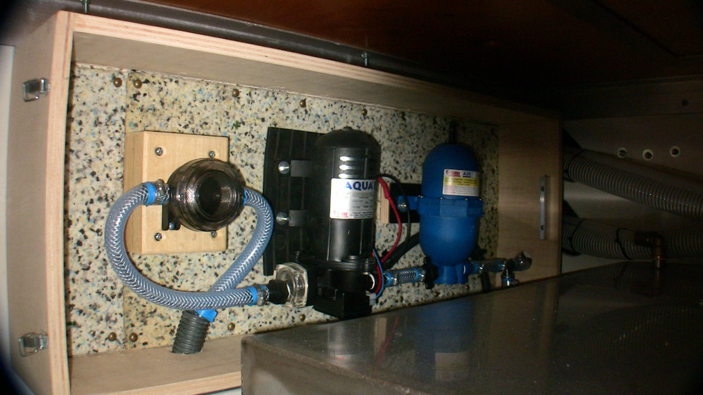 dans la soute pres des réservoir: les pompes a eau et accessoires en hors gel