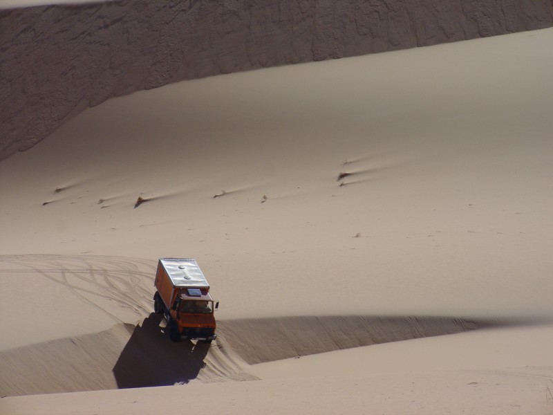 "Si vous n'avez pas l'habitude de circuler dans le desert, seul et en dehors des pistes ; ne prenez pas exemple sur mes voyages pour tenter de faire la même chose seul. Vous devez comprendre que l'experience aide vraiment beaucoup pour que les choses se passent du mieux qu'il est possible mais qu'elle ne s'acquière qu'avec beaucoup de temps.