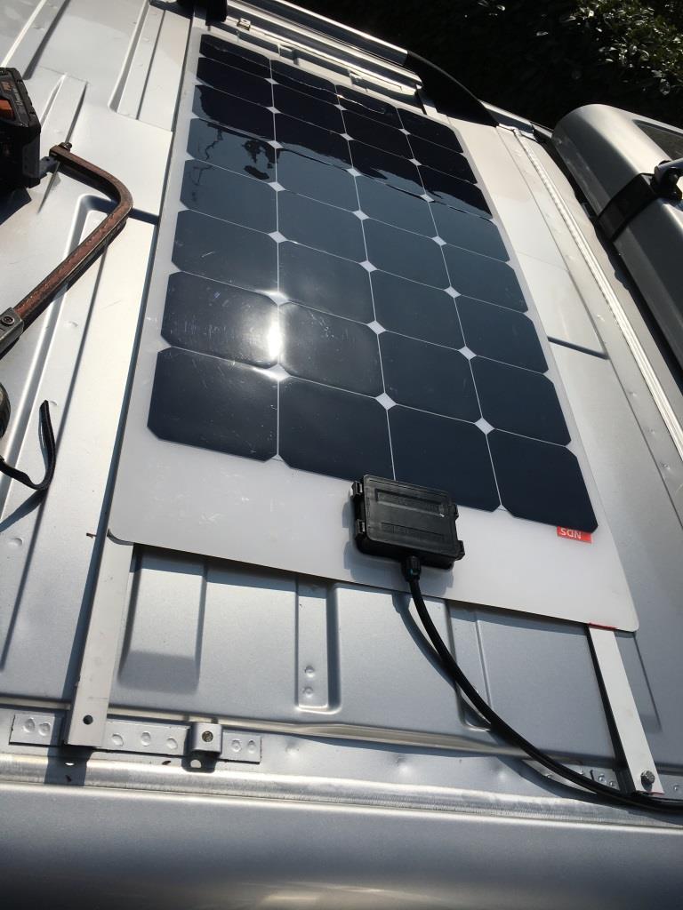 Test panneau solaire 100W flexible... pas mal du tout... bon rendement ... plus de batterie auxiliaire à plat
