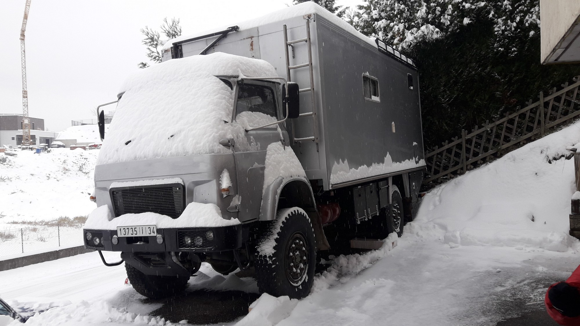 La et prochainement, les roues de secours seront fixées à l'arrière de la cellule, c'était prévu comme cela depuis le début, mais pas eu le temps de faire un gros support pour elles.....Beaucoup de travaux à faire, mais ensuite le camion répondra à nos attentes....