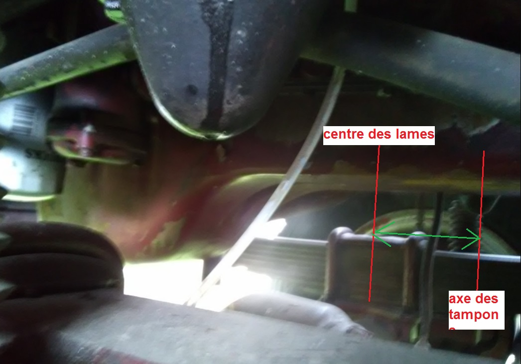 _ Par contre sur l'essieu avant , butée et pont 7 cm à plat et au repos , avec le croisement de pont de 50 cm à l'arrière gauche j'ai 14.5cm d'espace entre la buté et l'assise du pont du même coté et l'autre coté j'ai 3.5 cm .