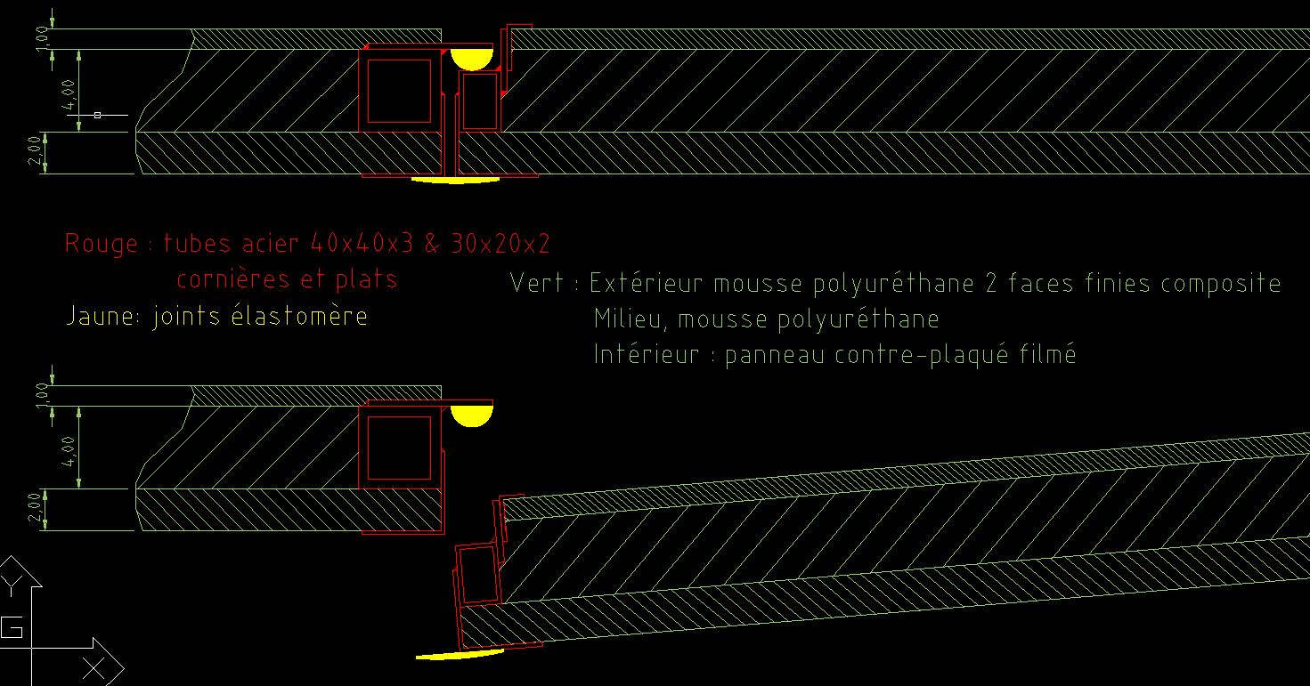 Attention c'est juste des cotes brutes non tolérancées, à la vas-vite pour faire mes débits. Je le précise car c'est un aberration en conception mécanique, à l'encontre des règles métier... C'est fait dans du laminé plat en ep 8mm.