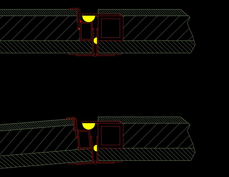 Ici une simulation de la déformation la plus défavorable que je veux éviter. Sous 10° de torsion + écrasement maxi des lames côté gauche la roue rentre dans la cellule de 4cm. Mais je ne veux absolument pas atteindre cette configuration une fois terminé. La déformation est énorme, et je pense que je détruis ma cellule si j'en arrive là !!! Je ferai des essais / mesures, et au besoin ajouterai des butées mécaniques. Sachant que la guide incliné est prévu pour 5° maximum.