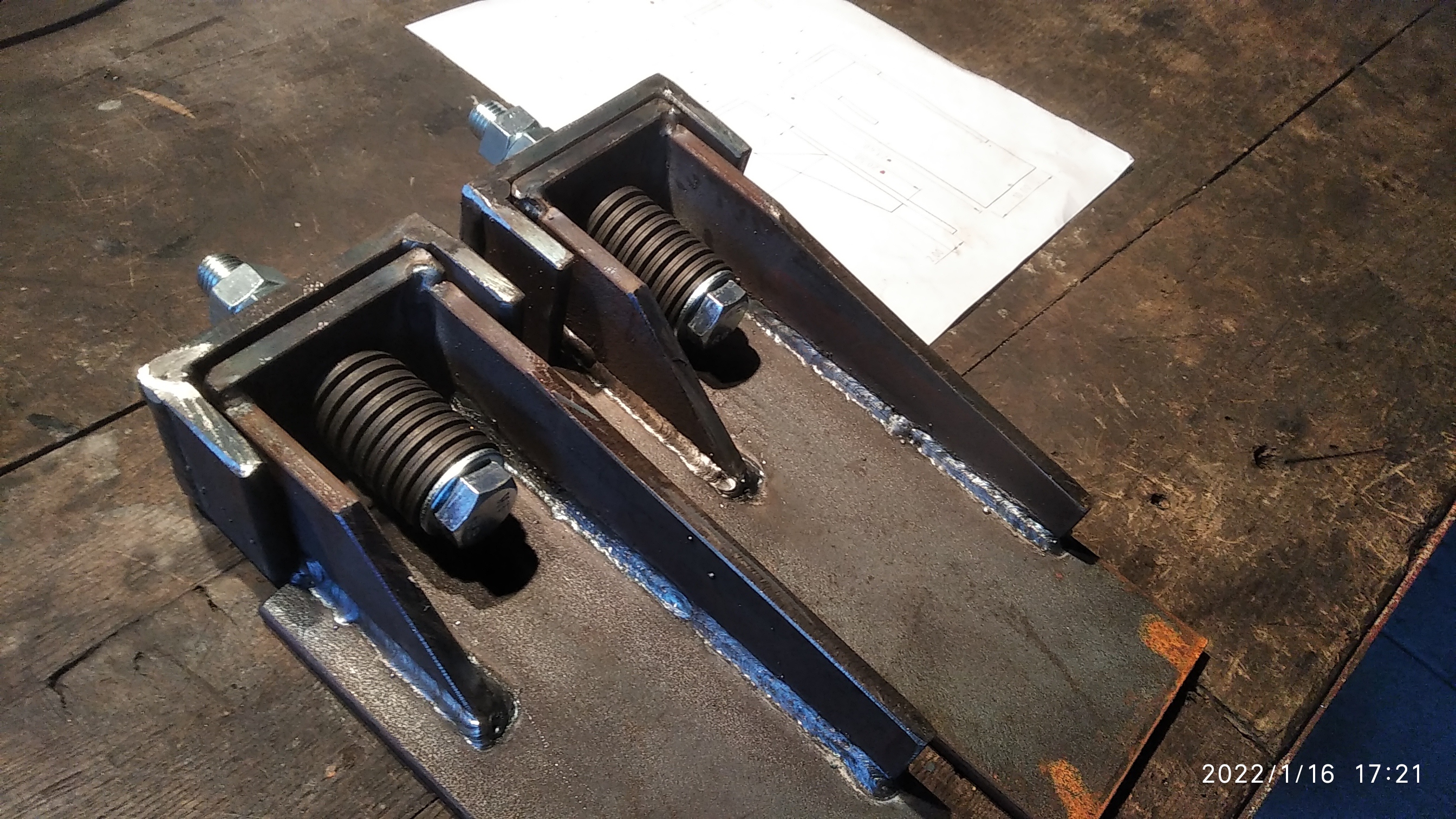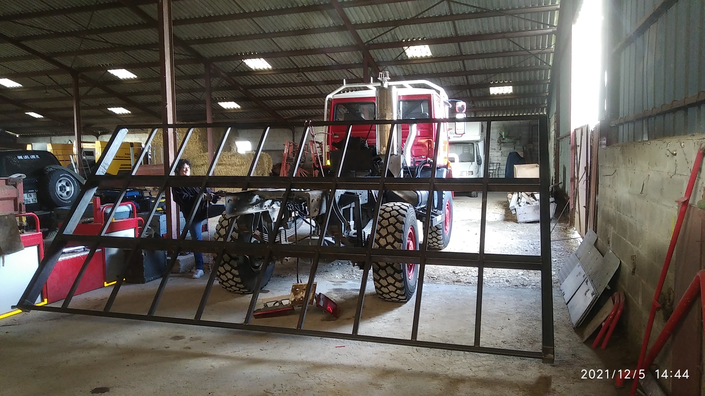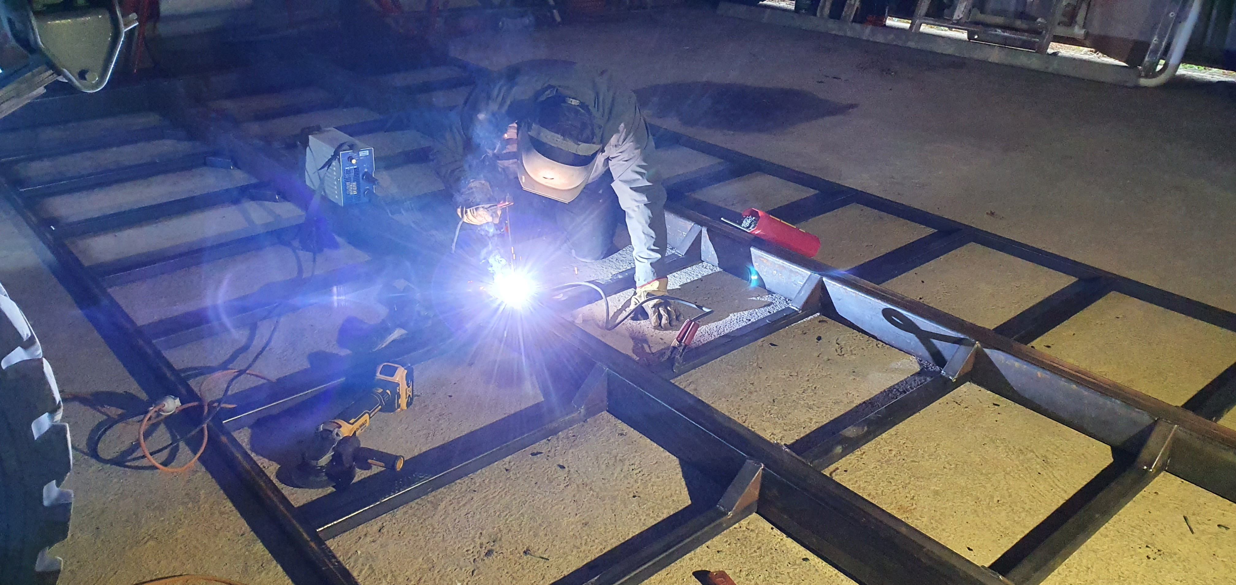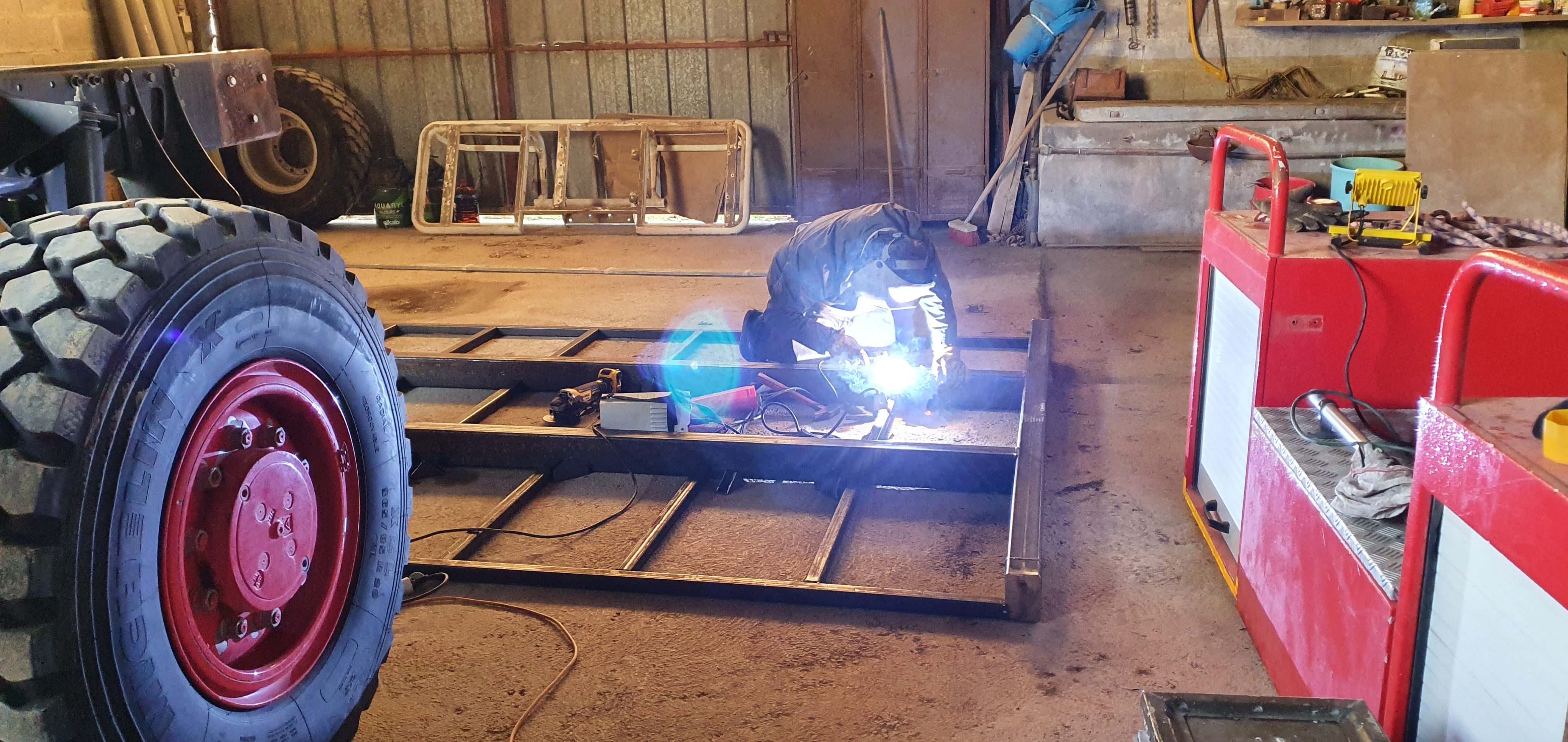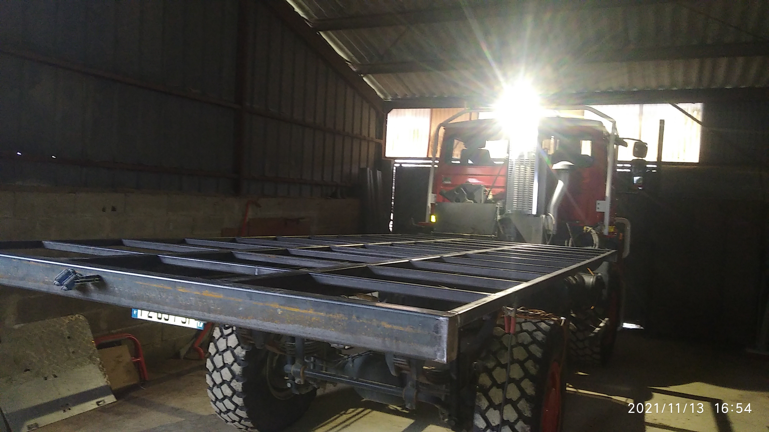 Fait. Plus qu'à terminer qques cordons sur le faux châssis, puis le redresser au chalumeau, démonter les supports côté camion, mettre ça en place pour tracer et percer, et souder sur le faux-châssis.