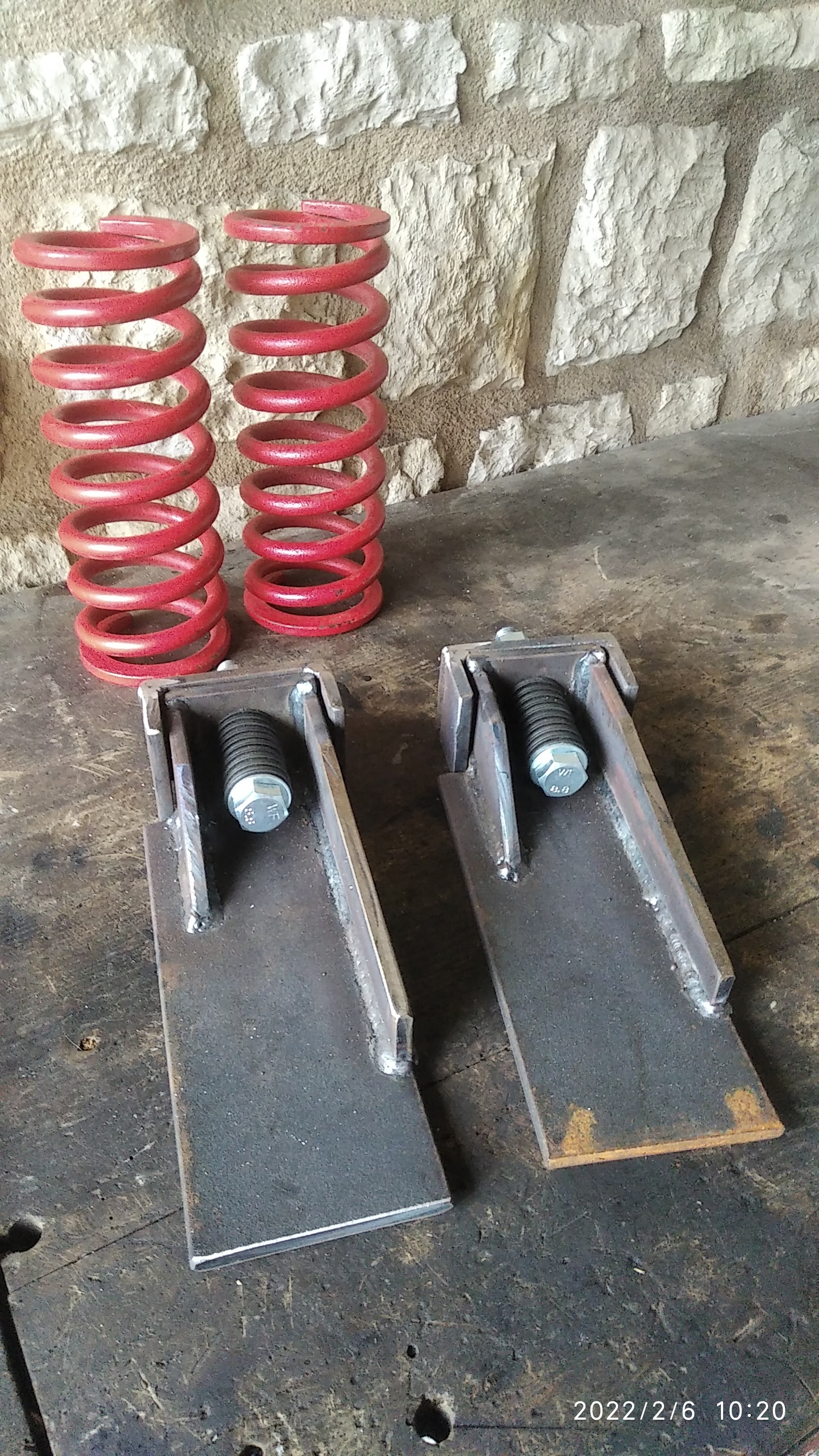 J'ai trouvé sur le bon coin des ressorts de MGB anglaise de collection à 20€ ! Dimension 250xdia95 et diamètre de fil 13mm. Raideur estimée environ 150-200kg/cm (oui en newton normalement) que je vais essayé de mesurer au dynamomètre.