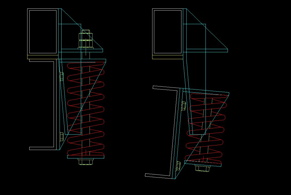 Ici sous 5° de vrillage du châssis. (Oui j'ai juste raccourci le ressort sans le comprimer ni le faire déformer pour l'angle)