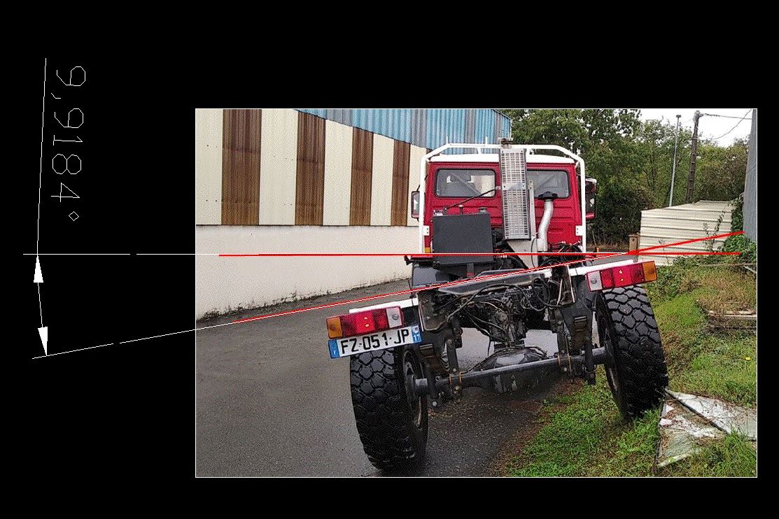 Le guide (incliné de 5° donc autant que le vraillage du châssis) sera au contact du longeron du châssis-camion côté gauche (non représenté).