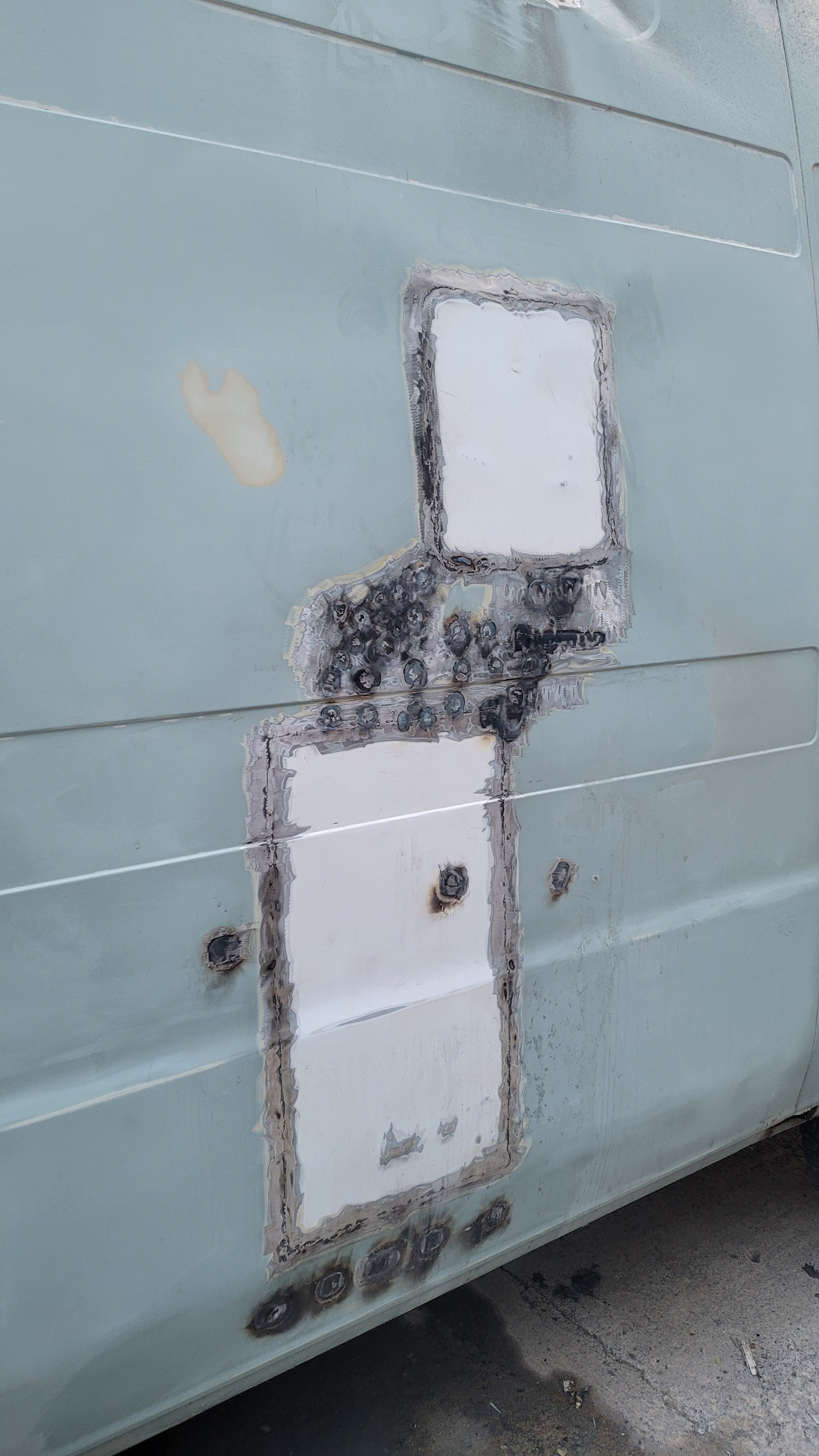place au photos, il y a du boulot, il va tout remettre d'origine niveau tôle, garder les vitres arrières et mettre une fenêtre d'origine sur la porte latérale.