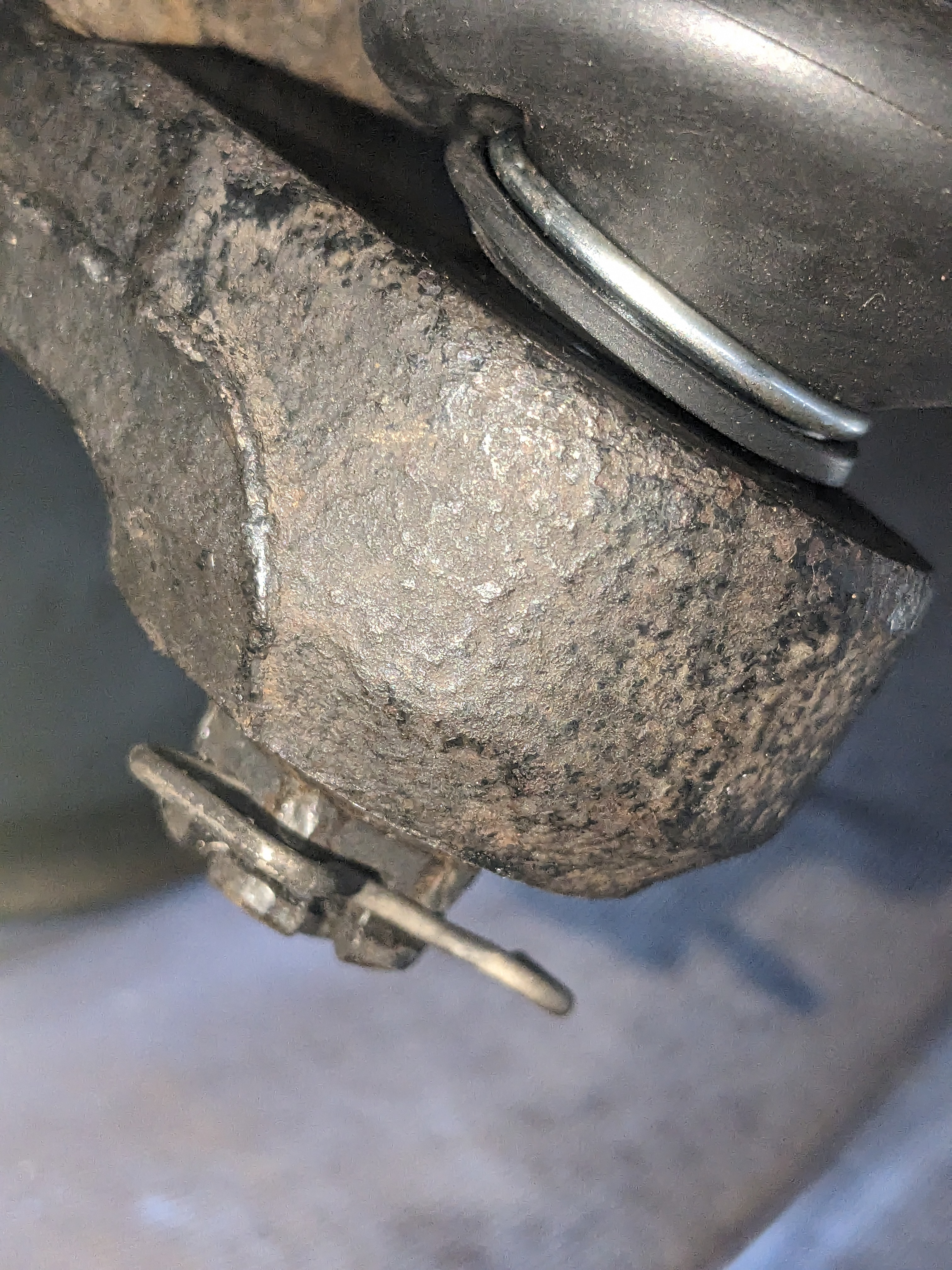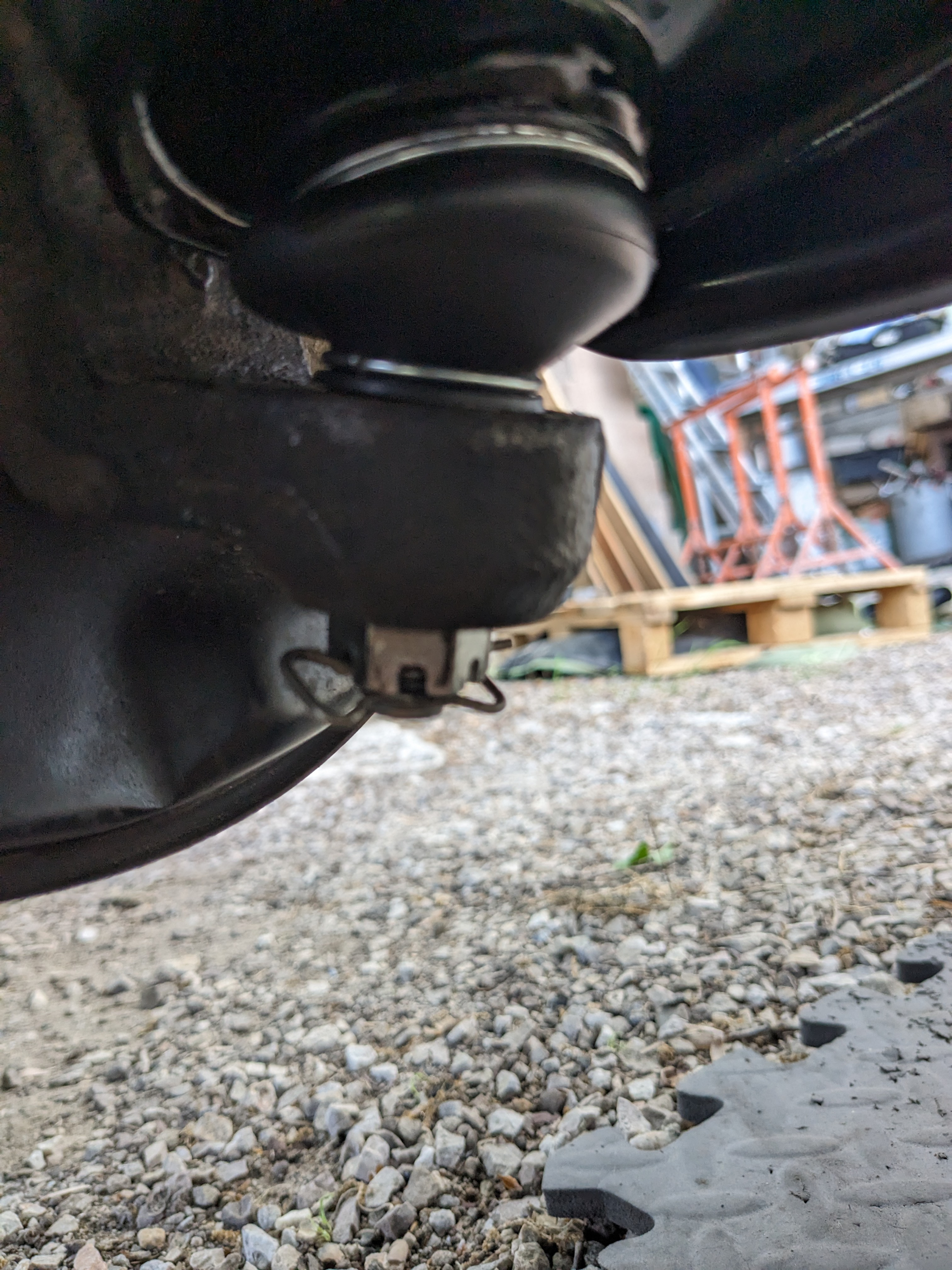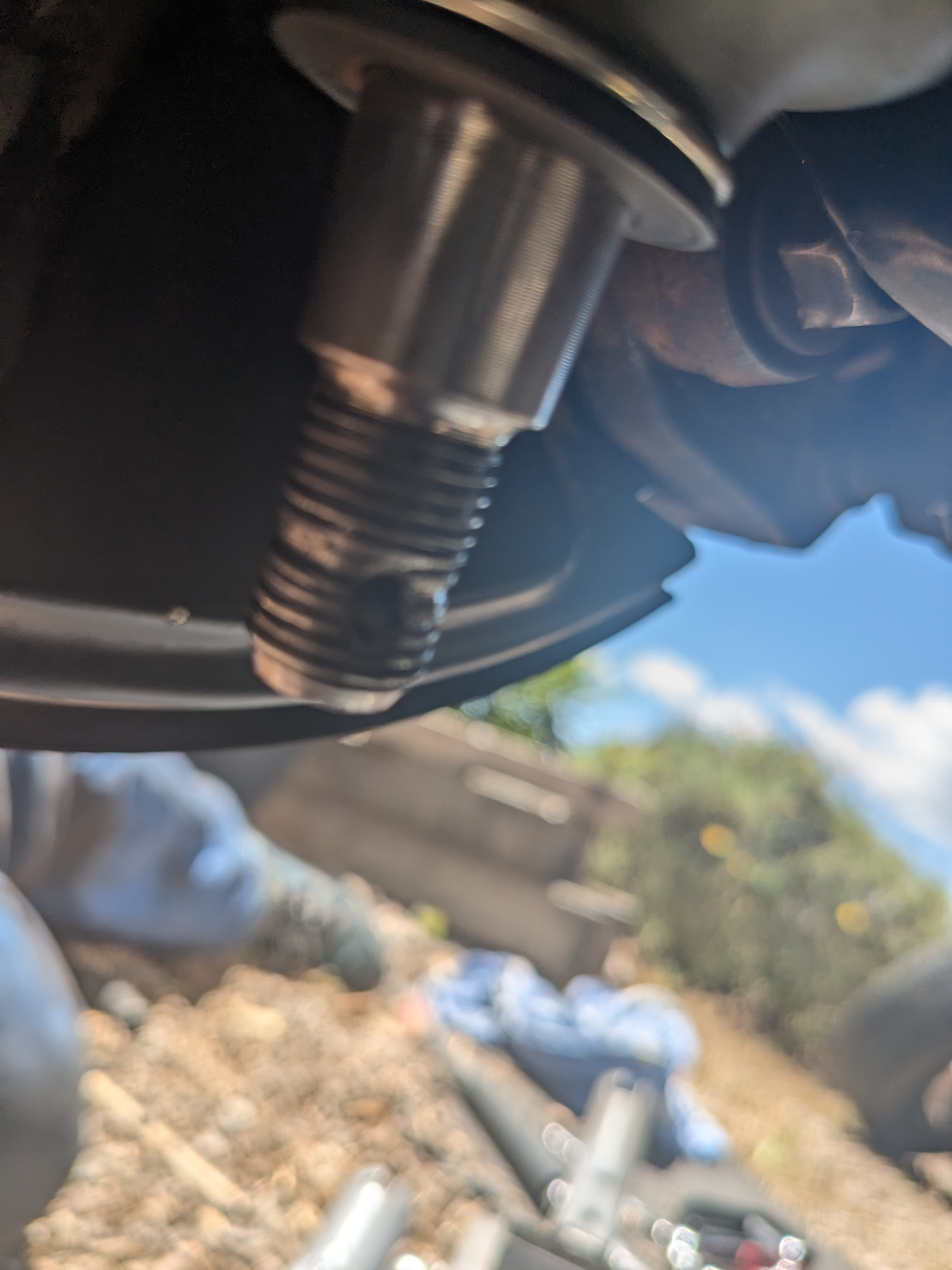 Suite, pièce reçue. Je pose sans forcer et je vois que le problème semble être le même. Le cône de la biellette ne veut pas rentrer aussi facilement dans le fusil que pour le côté gauche. J'enlève je nettoie tout bien. Pareil. Je décide d'y aller progressivement en mettant en pression comme je peux l'ensemble (la biellette se passe par le haut pas pratique du tout) afin d'alléger la pression sur le filet. Et j'utilise l'écrou d'origine. Ma première idée est de l'utiliser pour forcer puis mettre le nouveau. Ils sont différents celui d'origine est bcp plus plat. Et progressivement ça se met en place je peux passer une goupille. Cependant le cône ne semble pas être aussi enfoncé qu'à gauche. Je décide de laisser comme ça avec l'écrou d'origine. Je continue à remonter, barre stable...