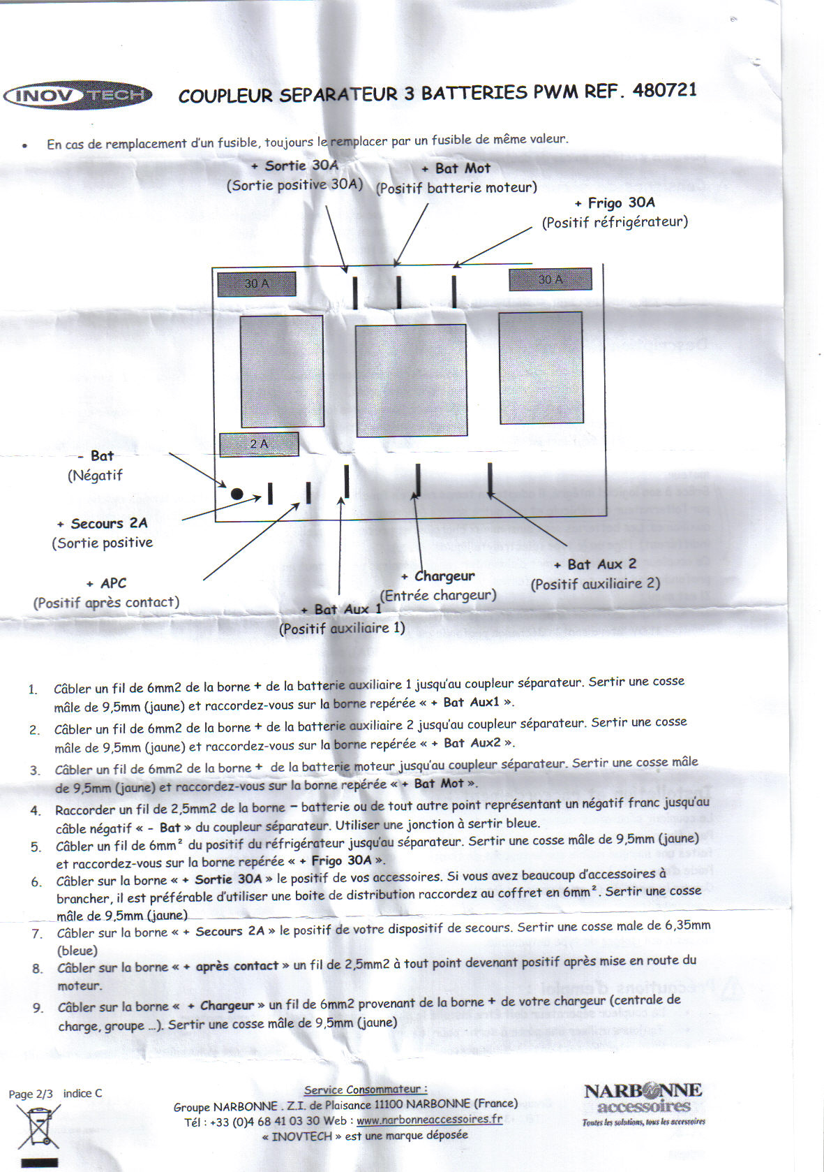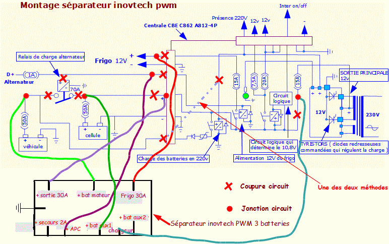 Il n'y a pas de schéma avec ton coupleur inovtech ? (à cette page on en parle ... http://www.campingcar-bricoloisirs.net/electricite.html)