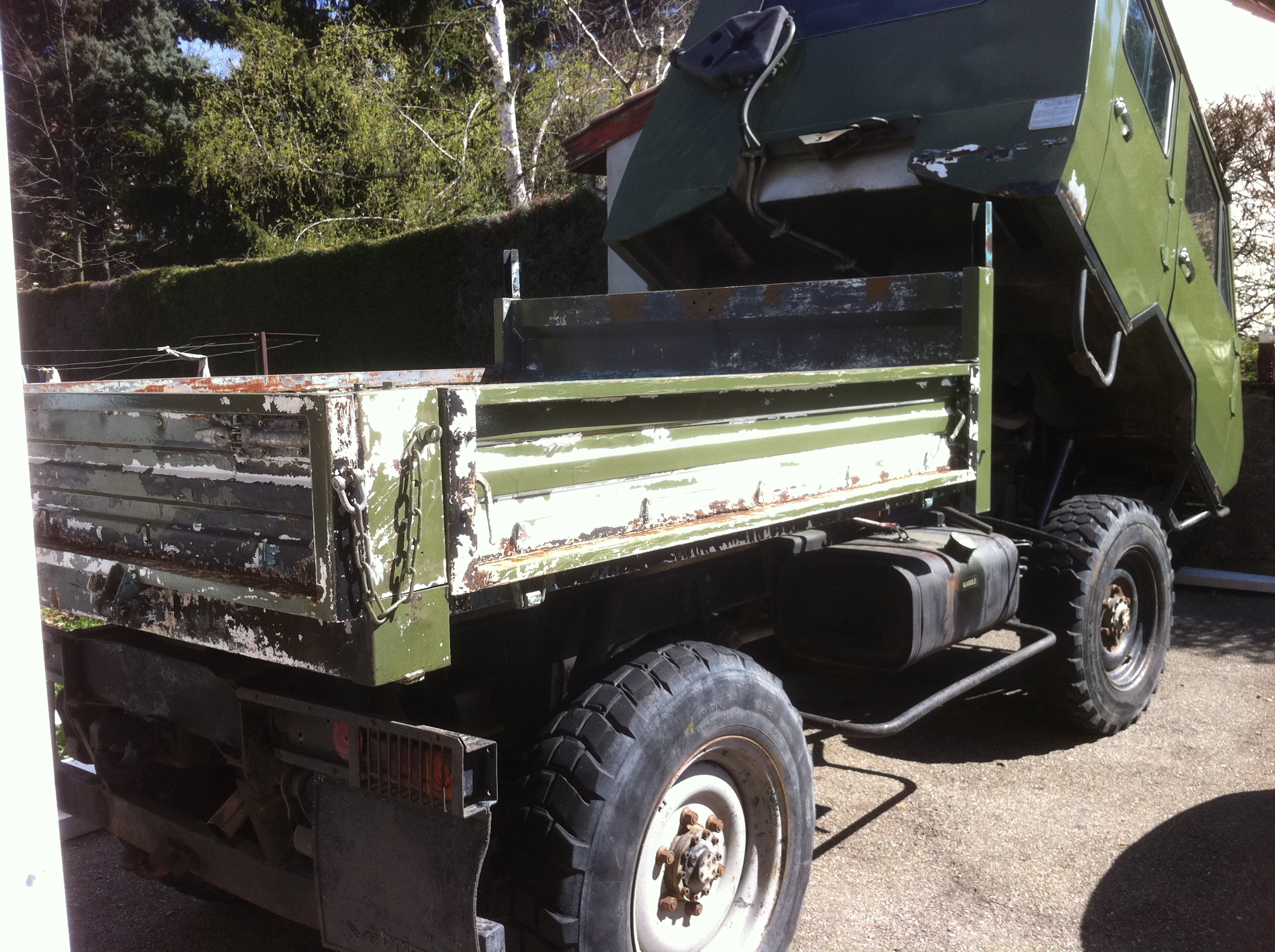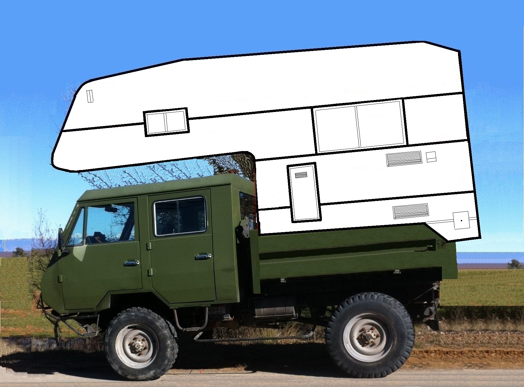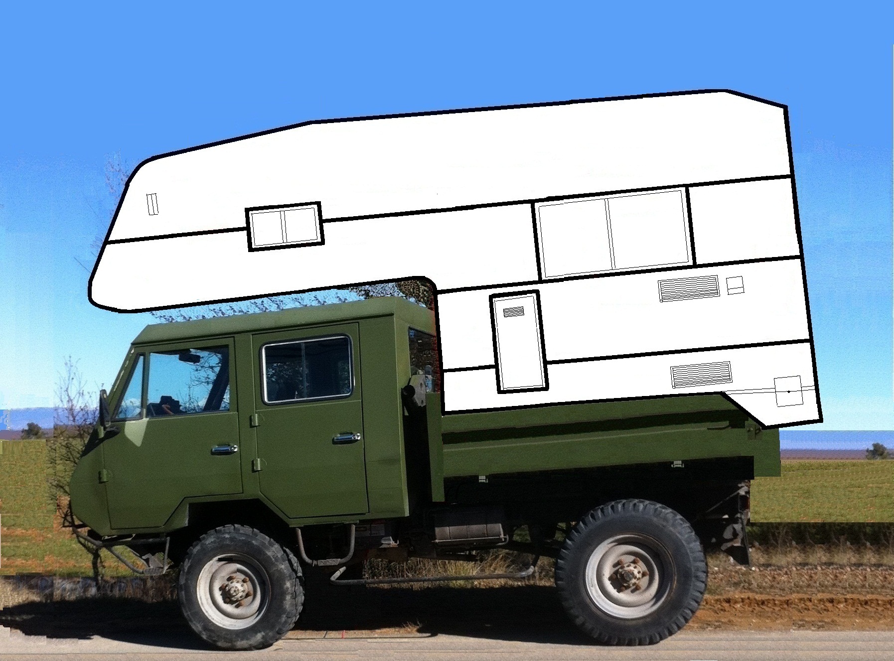 Et afin que tout le monde comprenne bien voila le camion vu du cul dans les 2 positions. Bien sur c'est beaucoup plus modeste que le Khama Soutra mais ça a le mérite d'être simple et des fois un peu rigolo. J'ai beaucoup rêvé de camping car au début des années 80, j'avais 2 mômes tout neufs et ils me foutaient la frousse.