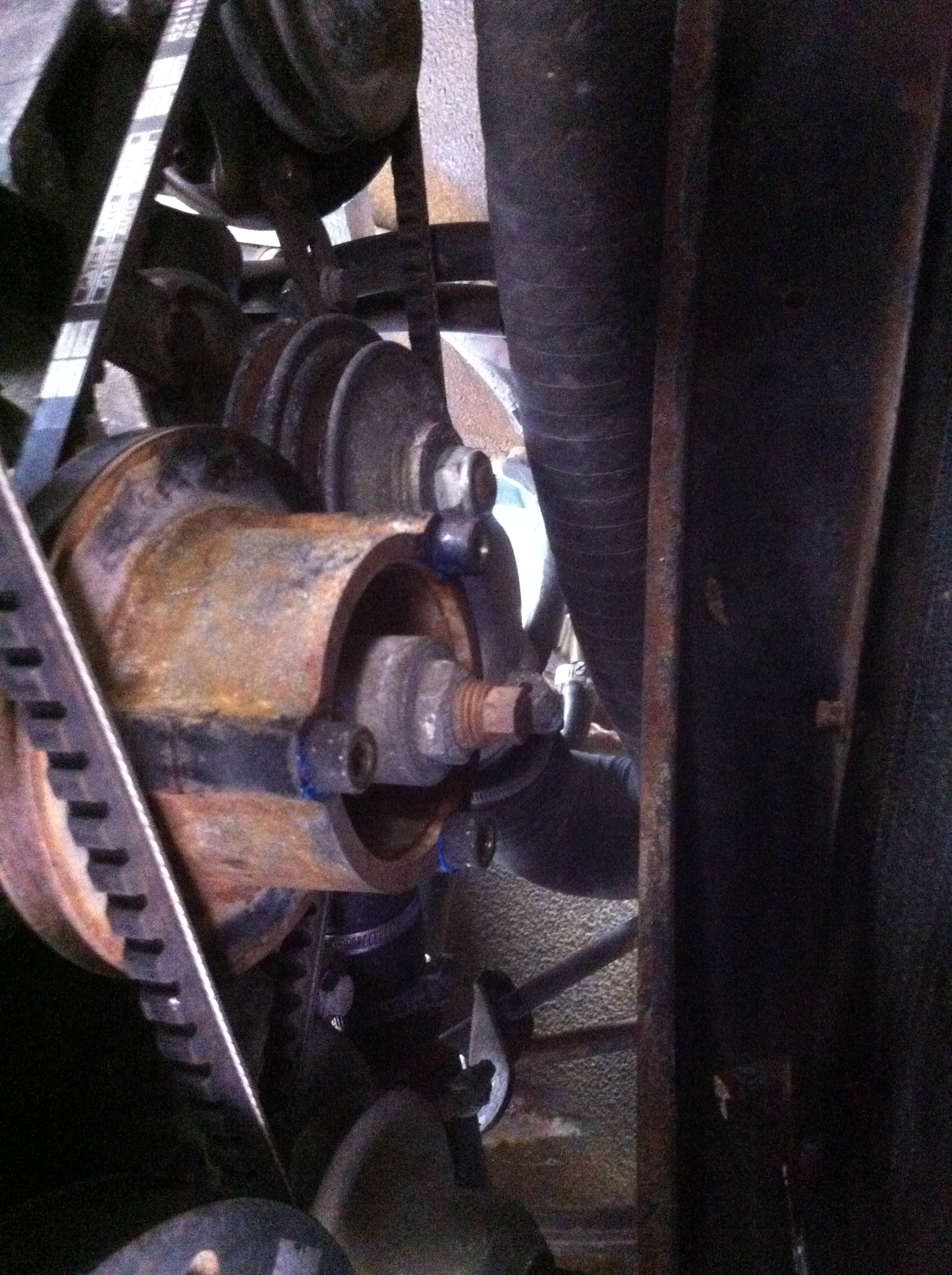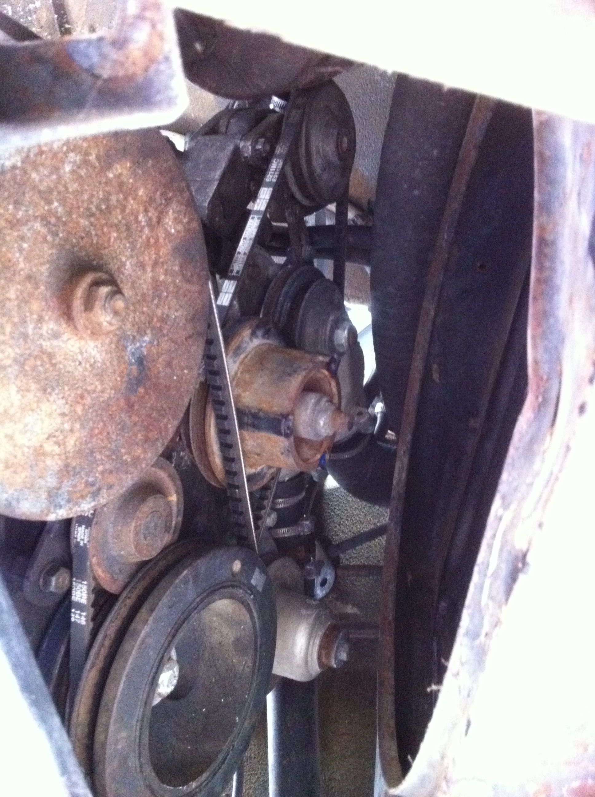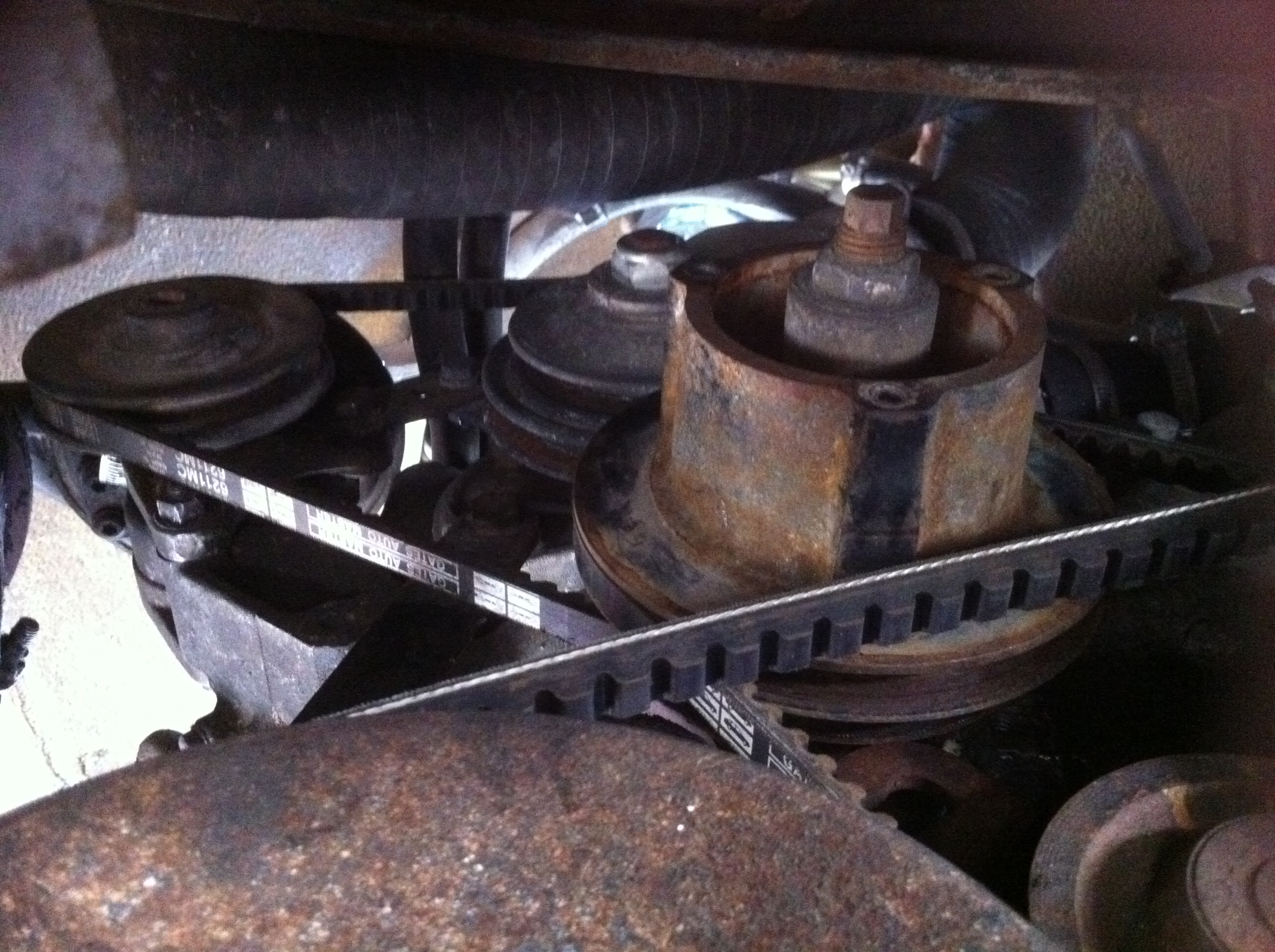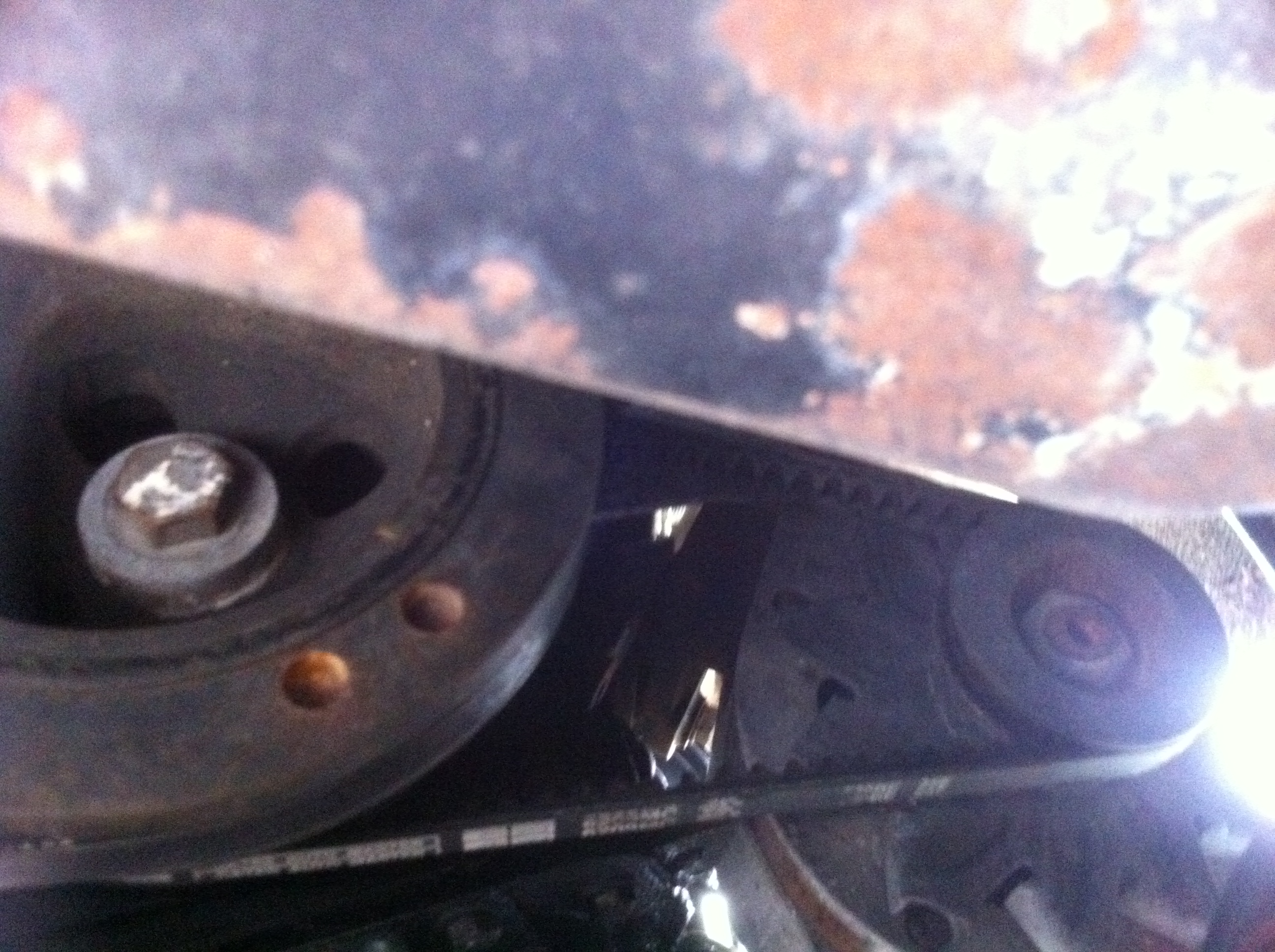 CA y est les courroies sont changées, c était un peu compliqué parce que je n'ai pas voulu tomber les radiateurs je l 'ai ai juste un tout petit peu écartés, ça ne laisse pas beaucoup de place pour travailler mais ça reste possible avec beaucoup de patience !!! et les bons outils...!