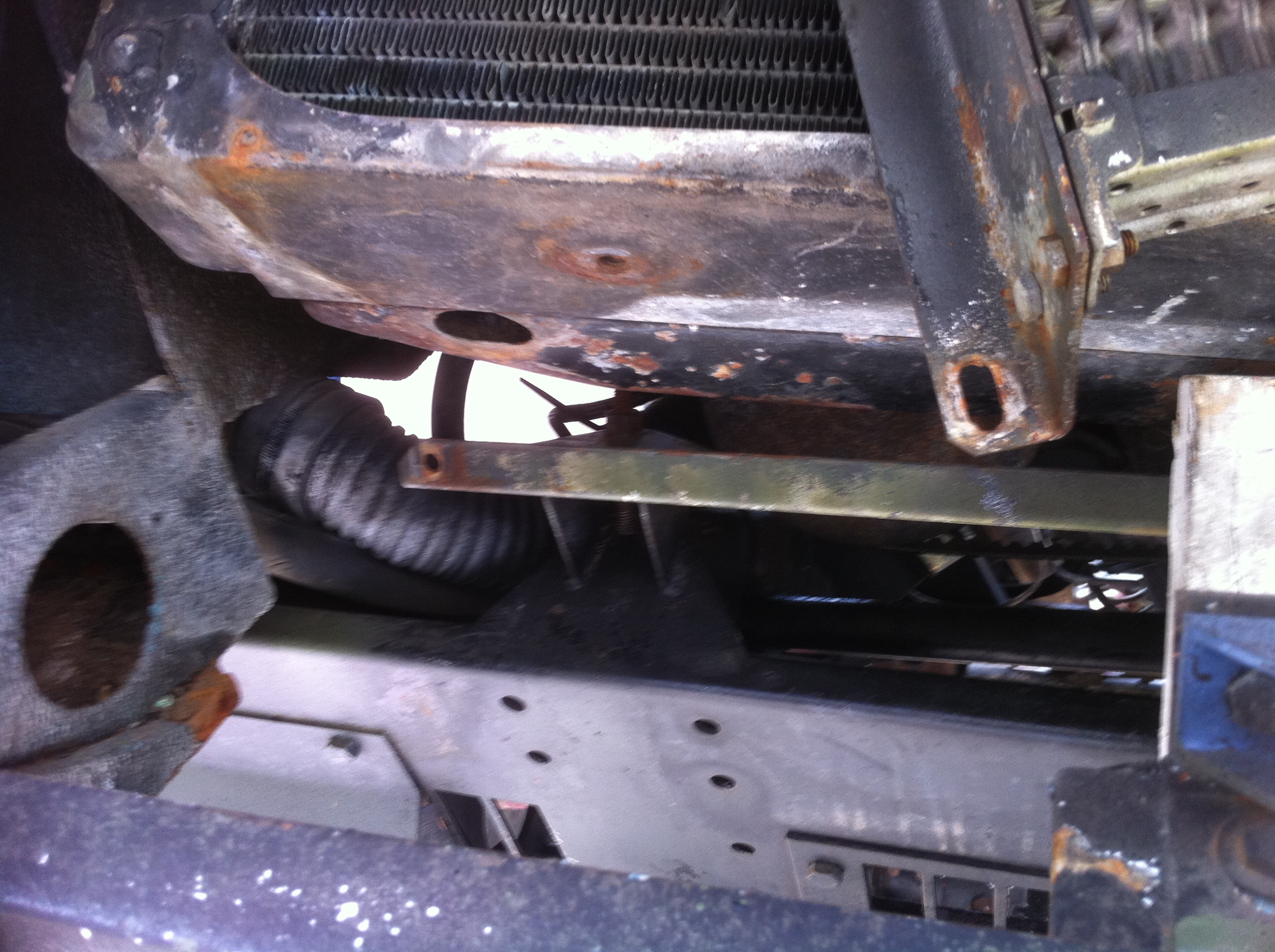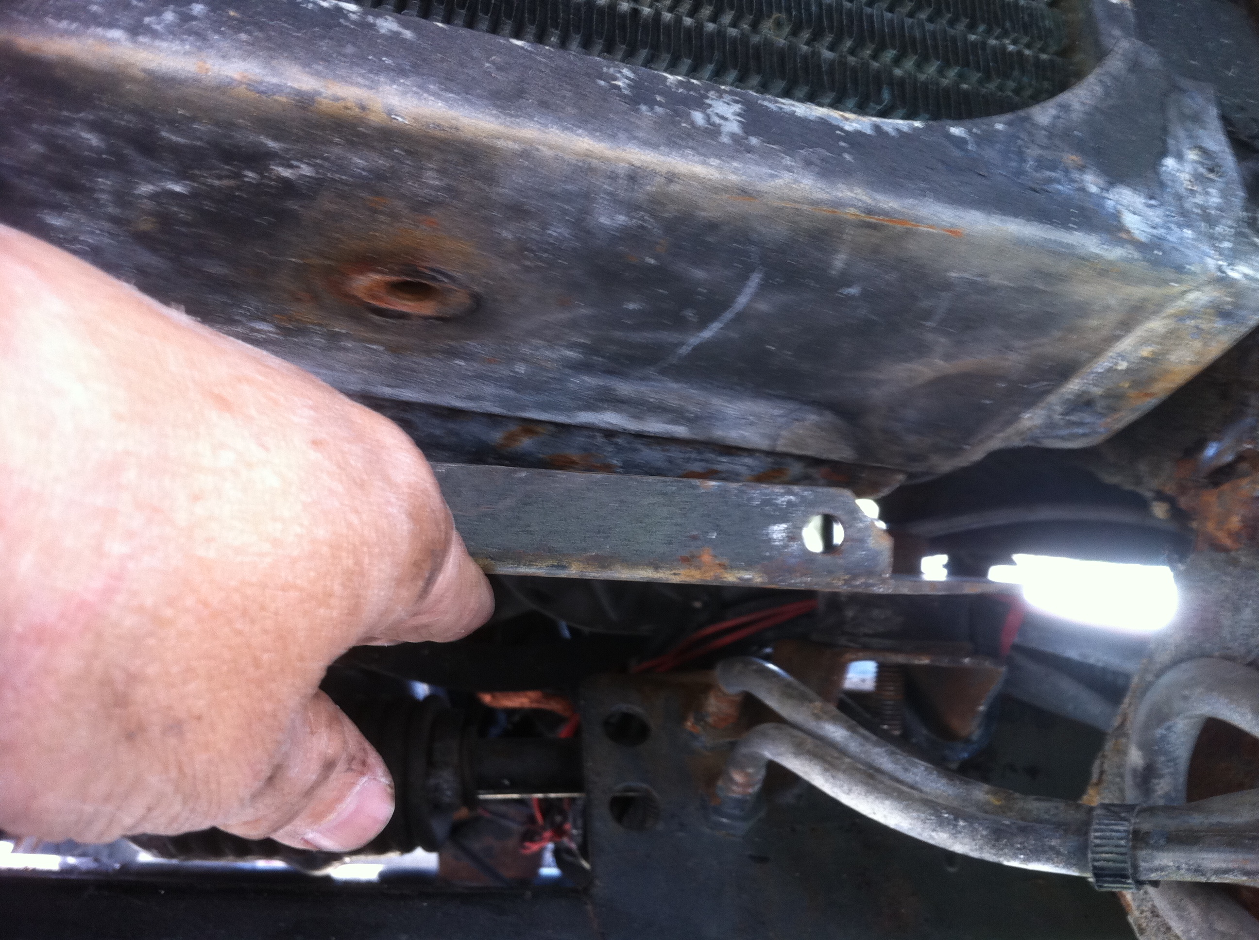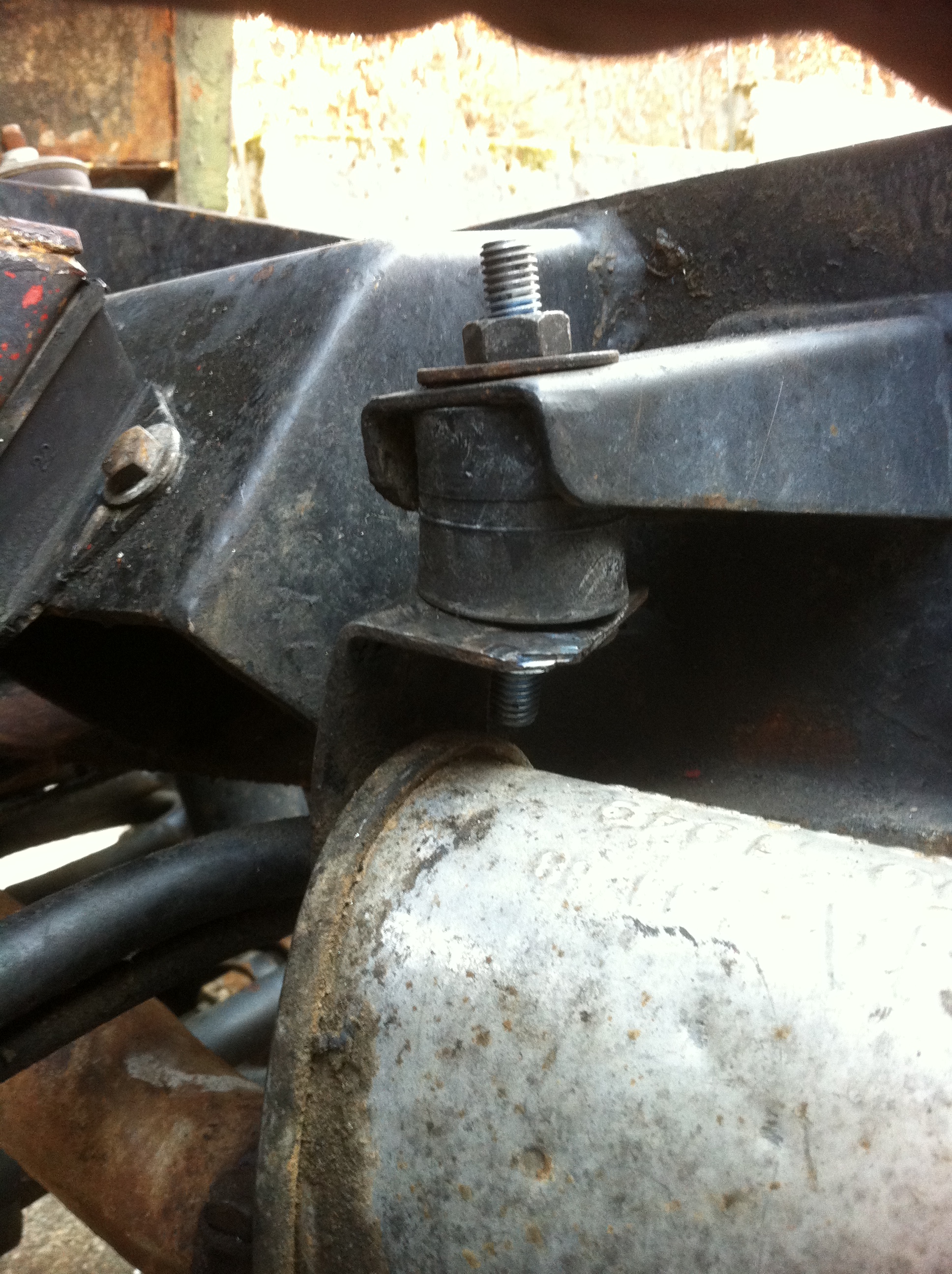 Et puis l'allais oublier le meilleur: dans les 3 petits trous (du 32 au moins) on passe 3 petits boulons qui fixent l'ensemble solidement (espoir quand tu nous tient) , on tire les petits "timons" à l'avant dans les trous qu'on a prévu dans la partie verticale derrière la cabine et on met des goupilles, histoire de tenir encore mieux. Et on peut même, Ô luxe et volupté, laisser les câbles de treuil(s) sous tension. Mais là, c'est du vice et c'est puni par la loi.