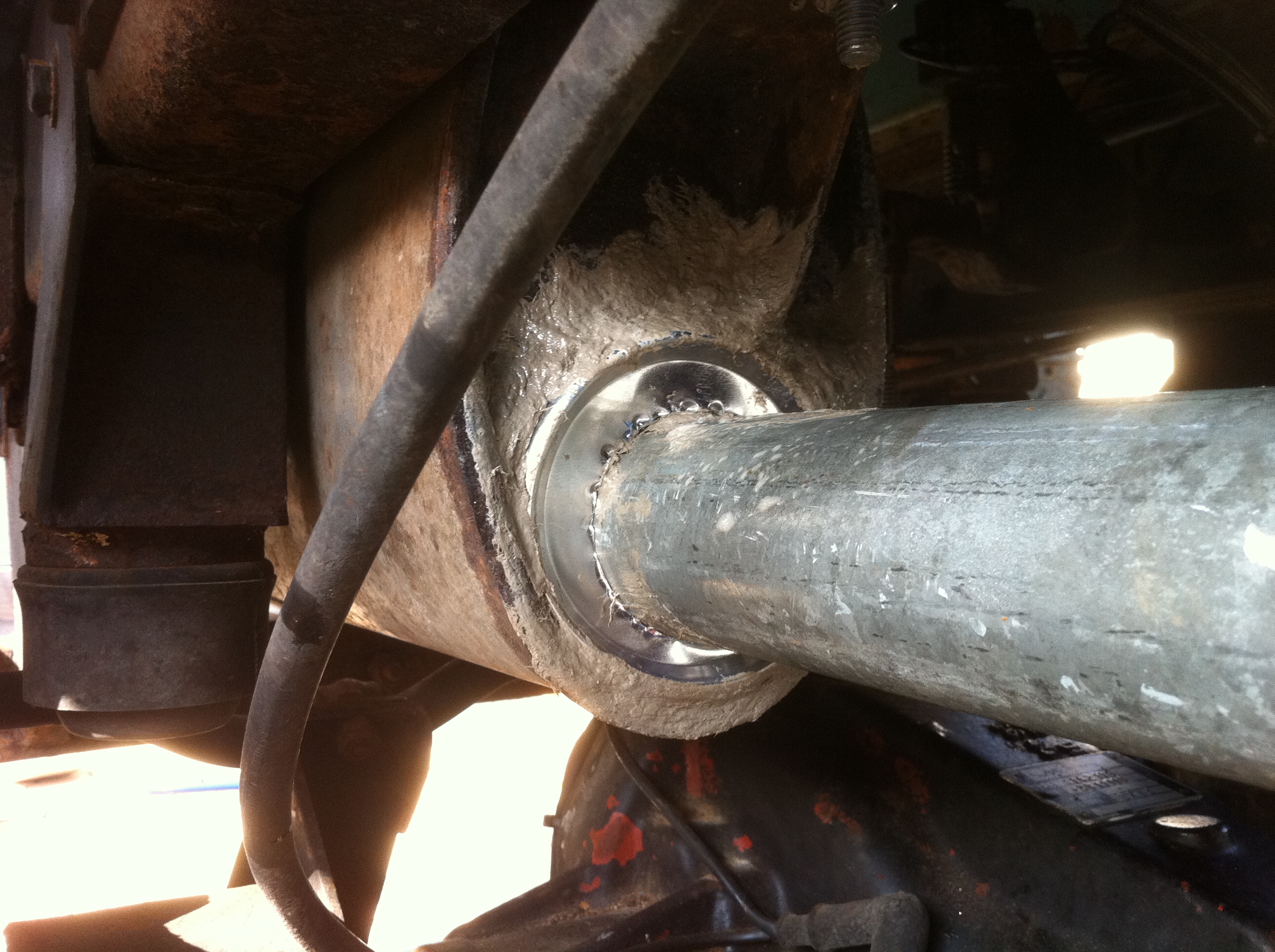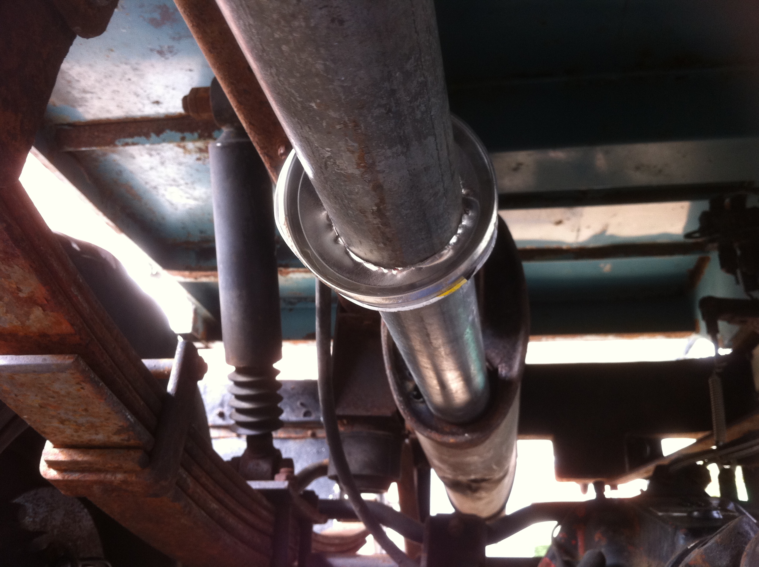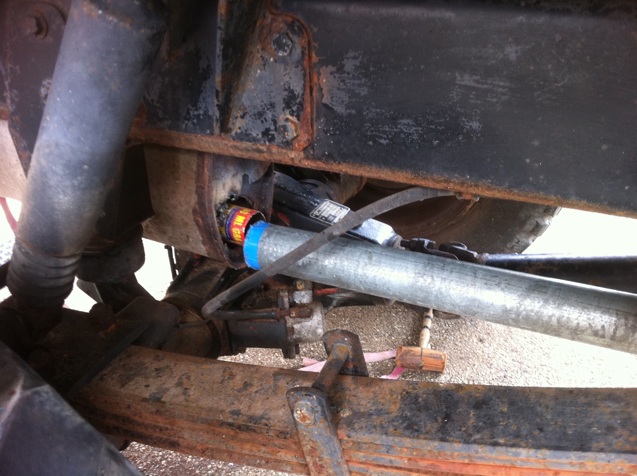Alors on a imaginé un support en se servant des ridelles du camion. On renforce, on rajoute deux barres pour stabiliser en les glissant dans des tubes soudés sous le camion,