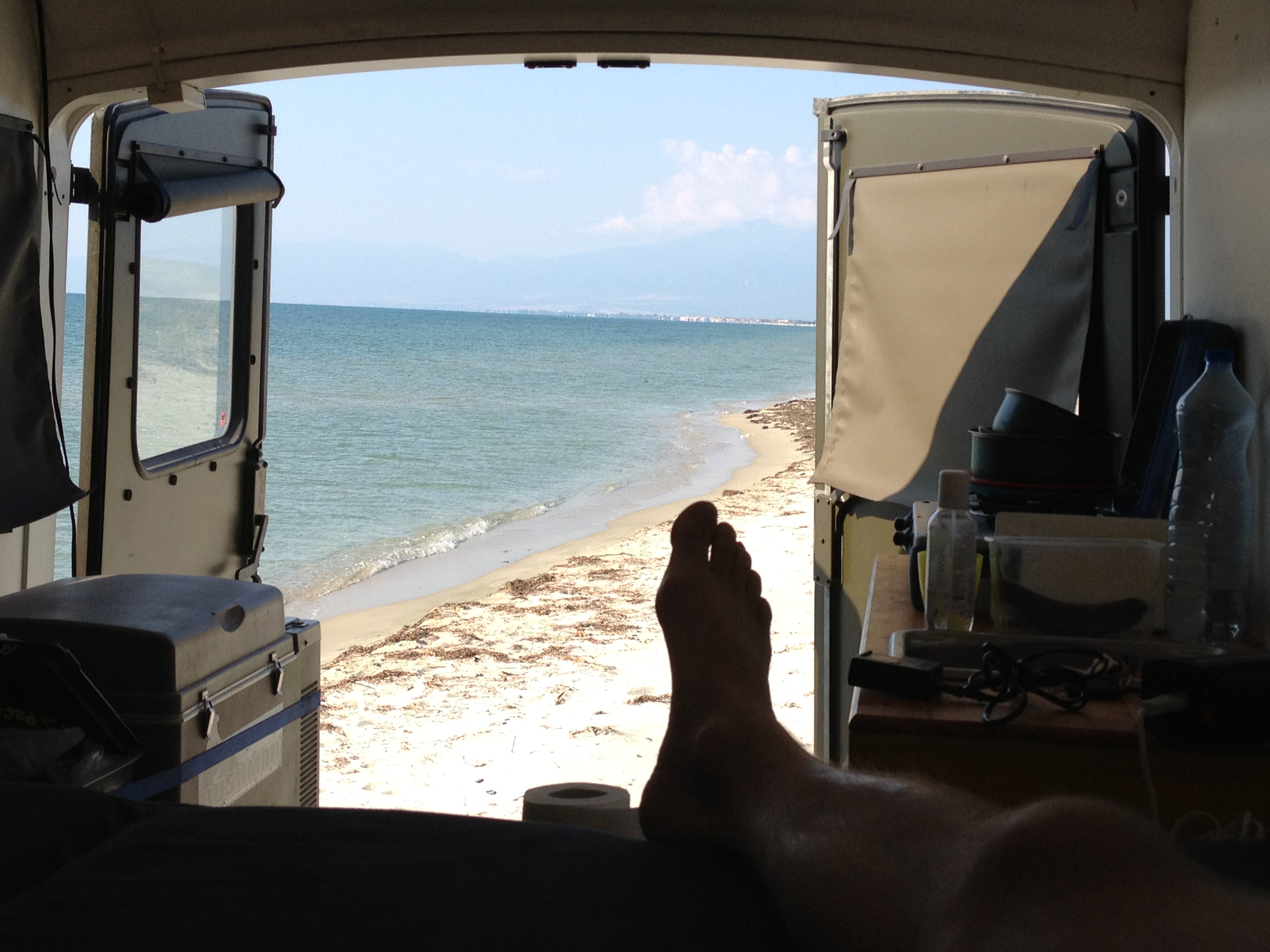 La mer croate ,j'ai trouvé ou mettre les roues du sprinter dans l'eau salée et sans voyageurs ,plutôt dur sur la cote .............