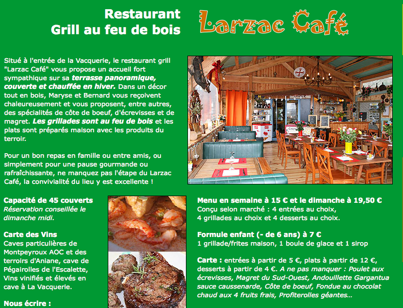 après pour ceux qui ont encore du temps je propose que l'on continue le lendemain matin, soit encore sur le plateau soit on peut se rapprocher de chez moi, petit restau qui va bien le midi, je connais une très bonne table avec menu qui va bien à 12€50, puis je peux vous faire découvrir un peu mon coin avec visite chez le voisin vigneron qui fait du bon vin, petite ballade à pieds pour monter au point de vue local, et éventuellement petit tour de castor s'il veut bien démarrer (J'y travaille!).