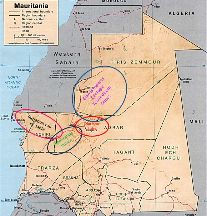 Ce qui suit est très perso : une fois à la frontière, il faut encore rajouter plusieurs centaines km de pistes pour se retrouver dans des régions qui correspondent vraiment à nos rêves de sable. Avant Atar, c'est une partie très belle, très intéressante, on commence à se mettre dans l'ambiance, à prendre la mesure de cet univers mais ce n'est, en quelque sorte, que l'apéro...