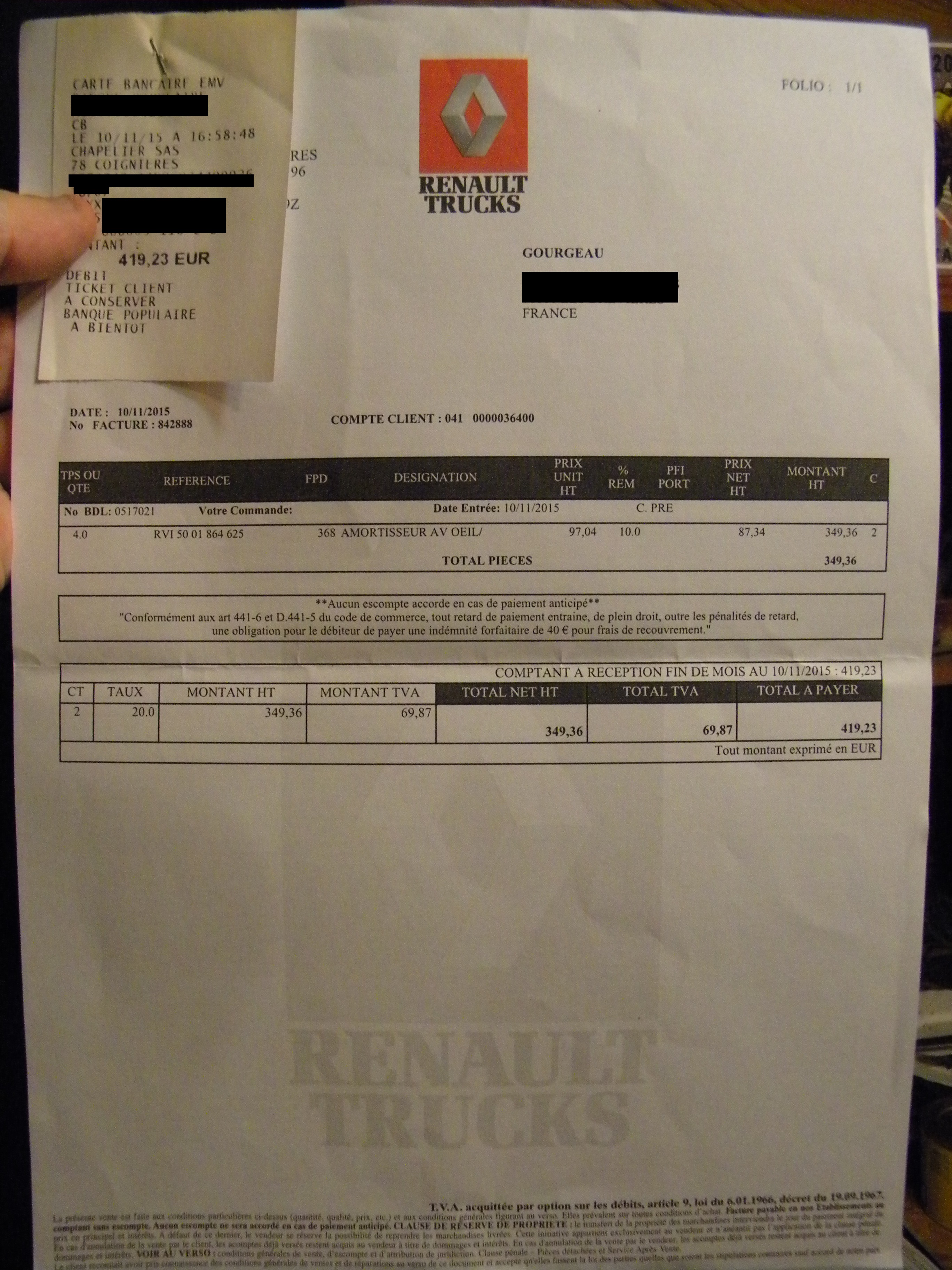 Je viens de recevoir un devis pour 4 amortisseurs Gabriel chez Renault Trucks : 760€ !!!! les 4... :shock: :shock: