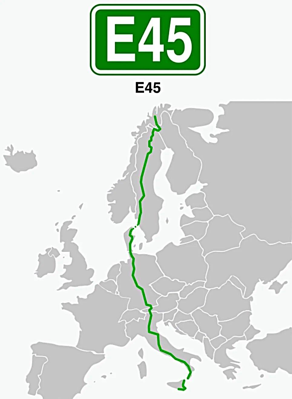 et 5190km c'est la longueur du plus long autoroute d'europe la E45