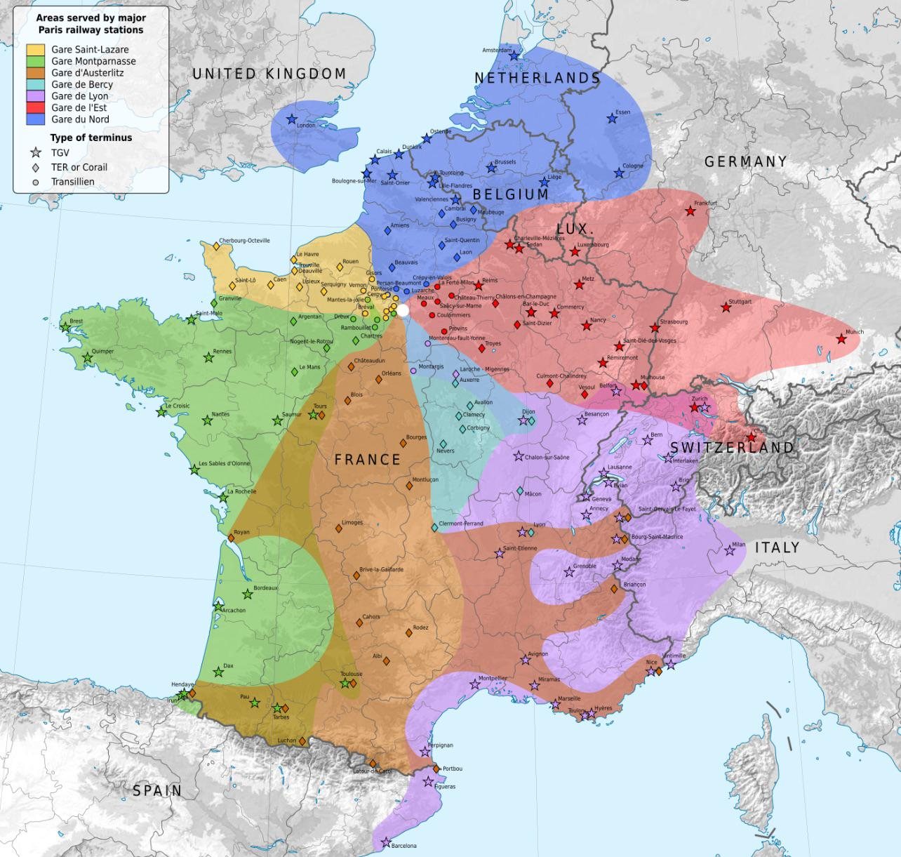 et sinon pour se promener en france on a aussi le train... bon désolé cette carte est très "capitale centrée" puisqu'il s'agit en fait des régions desservies suivant la gare parisienne choisie. vous en avez peut être mare des cartes en image du jour ? il ne tient qu'a vous de venir y poster