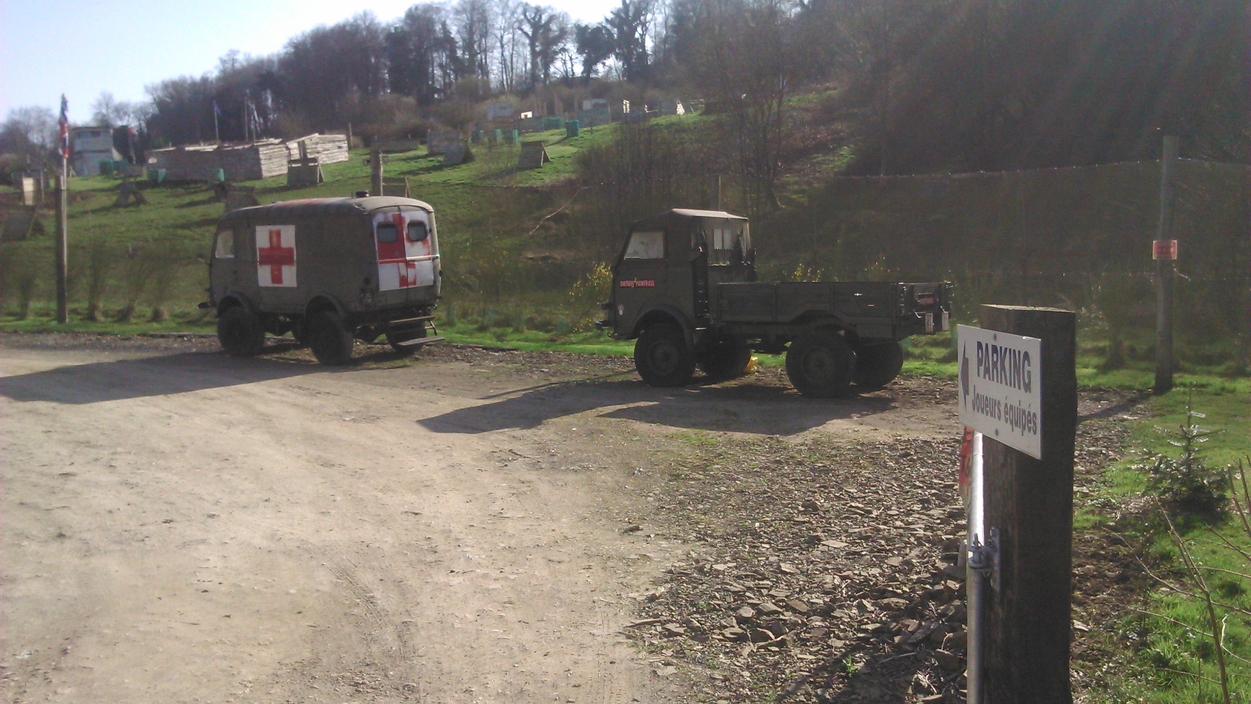 Deux petits pépères croisés devant un terrain de paintball en suisse-normande.