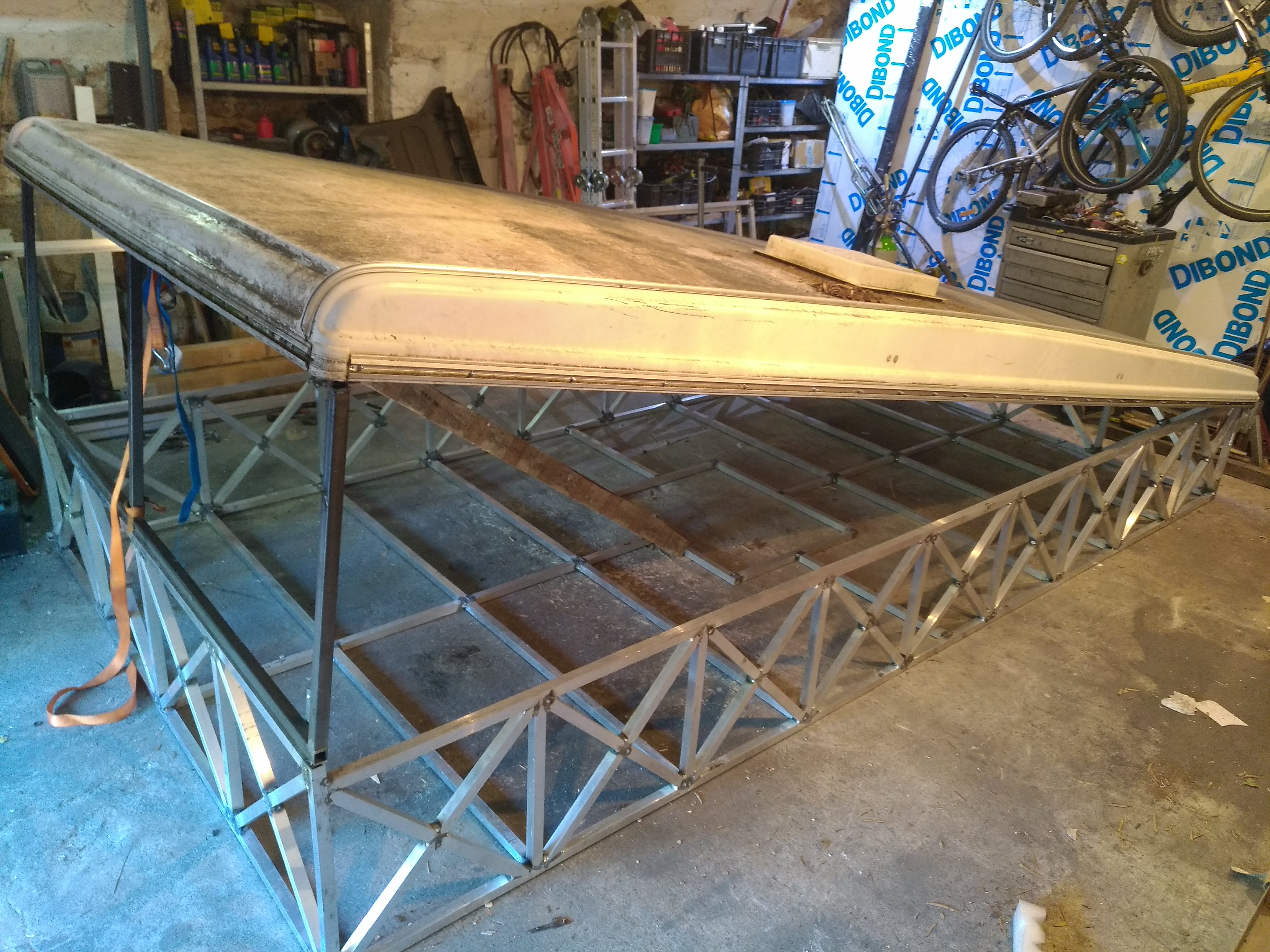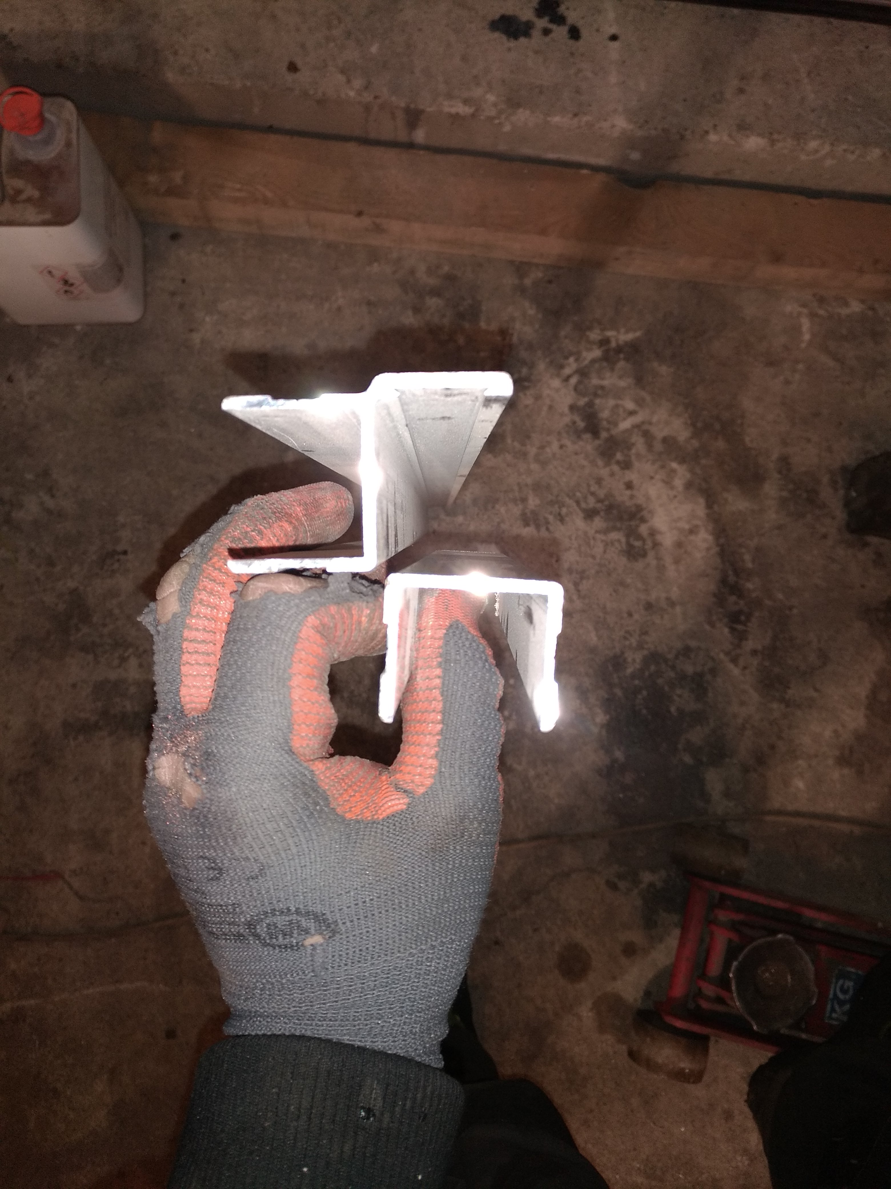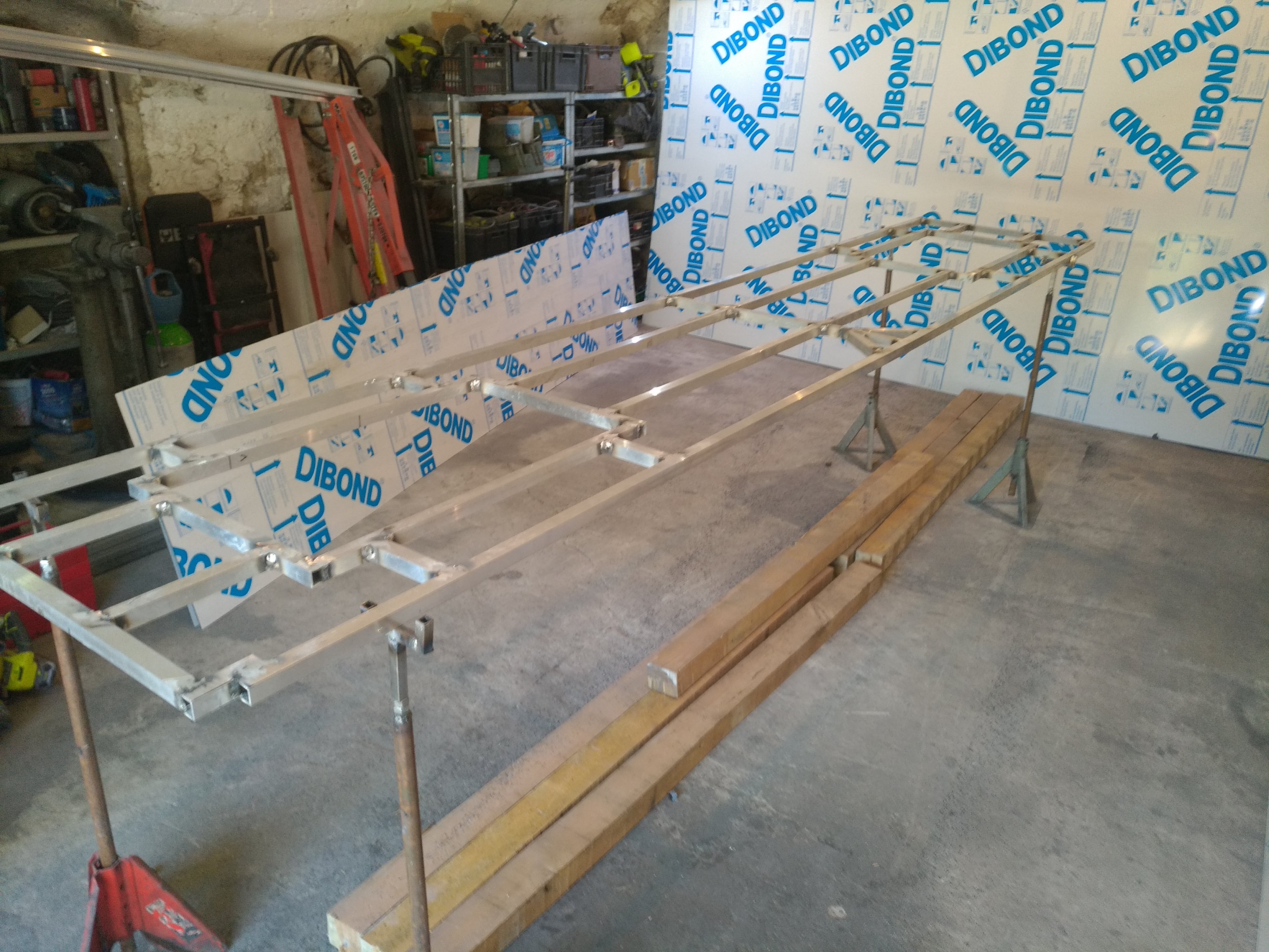 En gros le profil en U vient fermer le panneau fixe ( tout est monté à la colle PU et rivets étanche) et le profil en chaise est sur le panneau mobile . Quant la structure est fermée le toit recouvre tout et viens de poser sur une cornière avec un joint mousse pour la poussière .