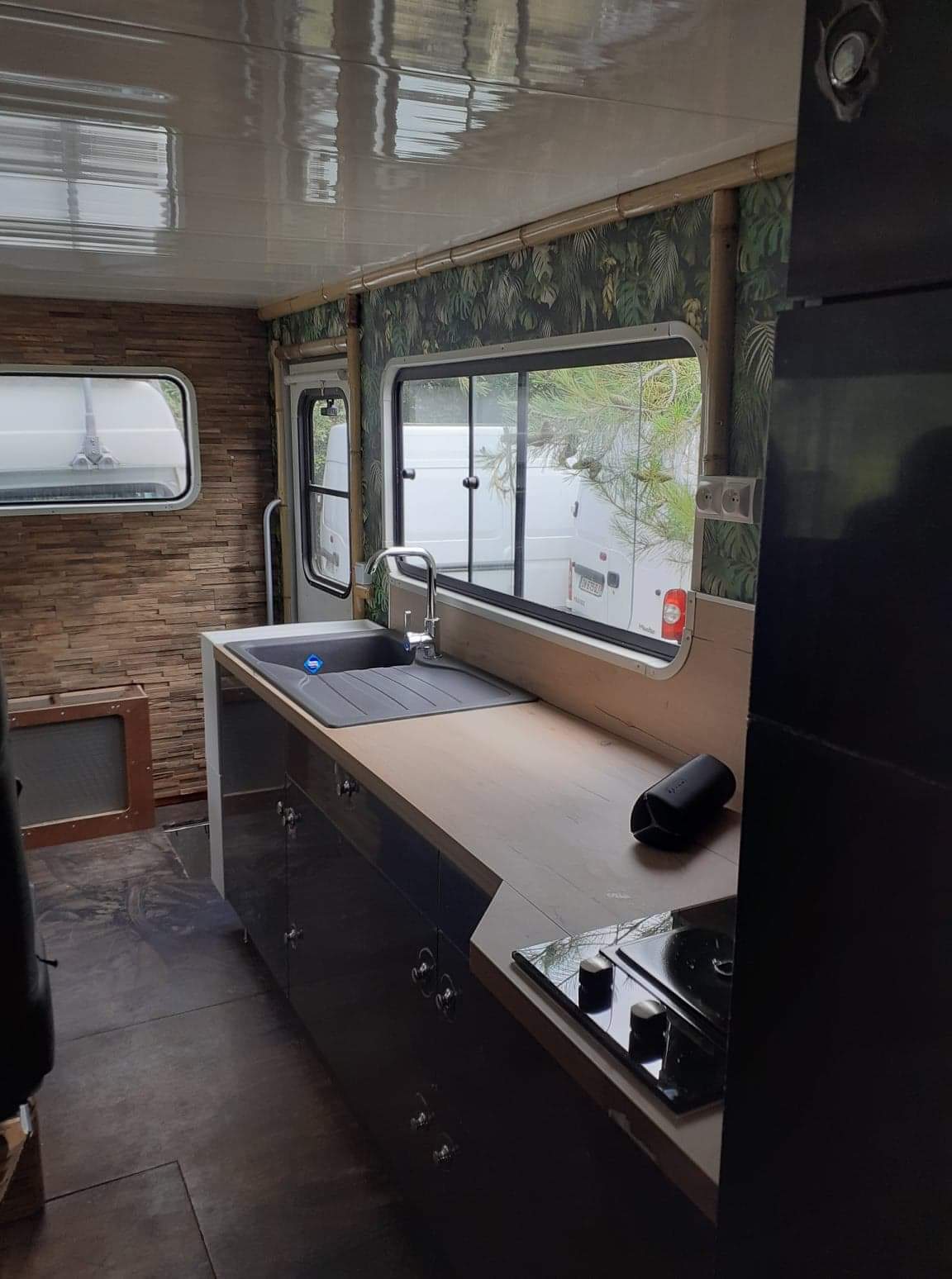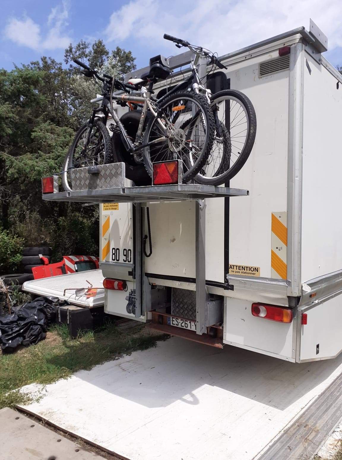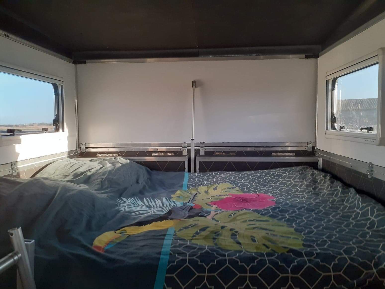 Les chambres qui se trouvent dans la rehausse ( une fois déployée) on y accède par l intérieur via une trappe avec une échelle télescopique fixée sur la partie haute